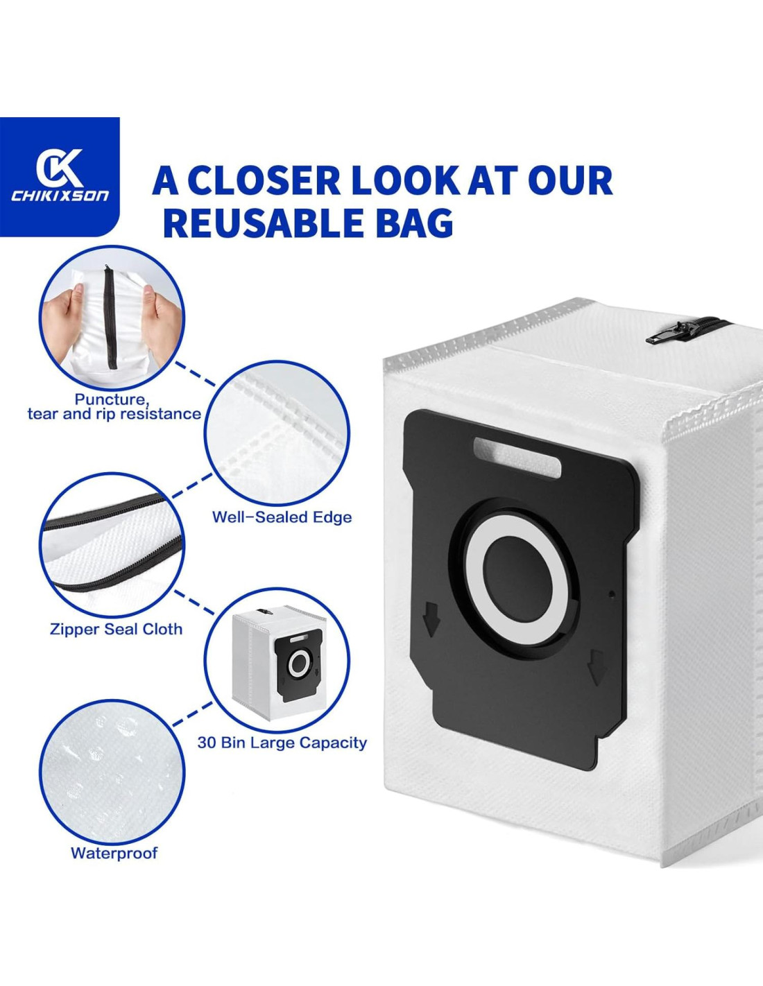 - Ahorra Dinero y Espacio-Acabaste de acumular bolsas de reemplazo - ¿paquetes de 8, 10 o 20? ¡Prueba estas bolsas de vacío reutilizables para iRobot Roomba! Con una gran capacidad para 30 contenedores, tela no tejida de 4 capas y tela fundida, y un collar de auto-sellado de bloqueo automático, ¡3 paquetes son más que suficientes!