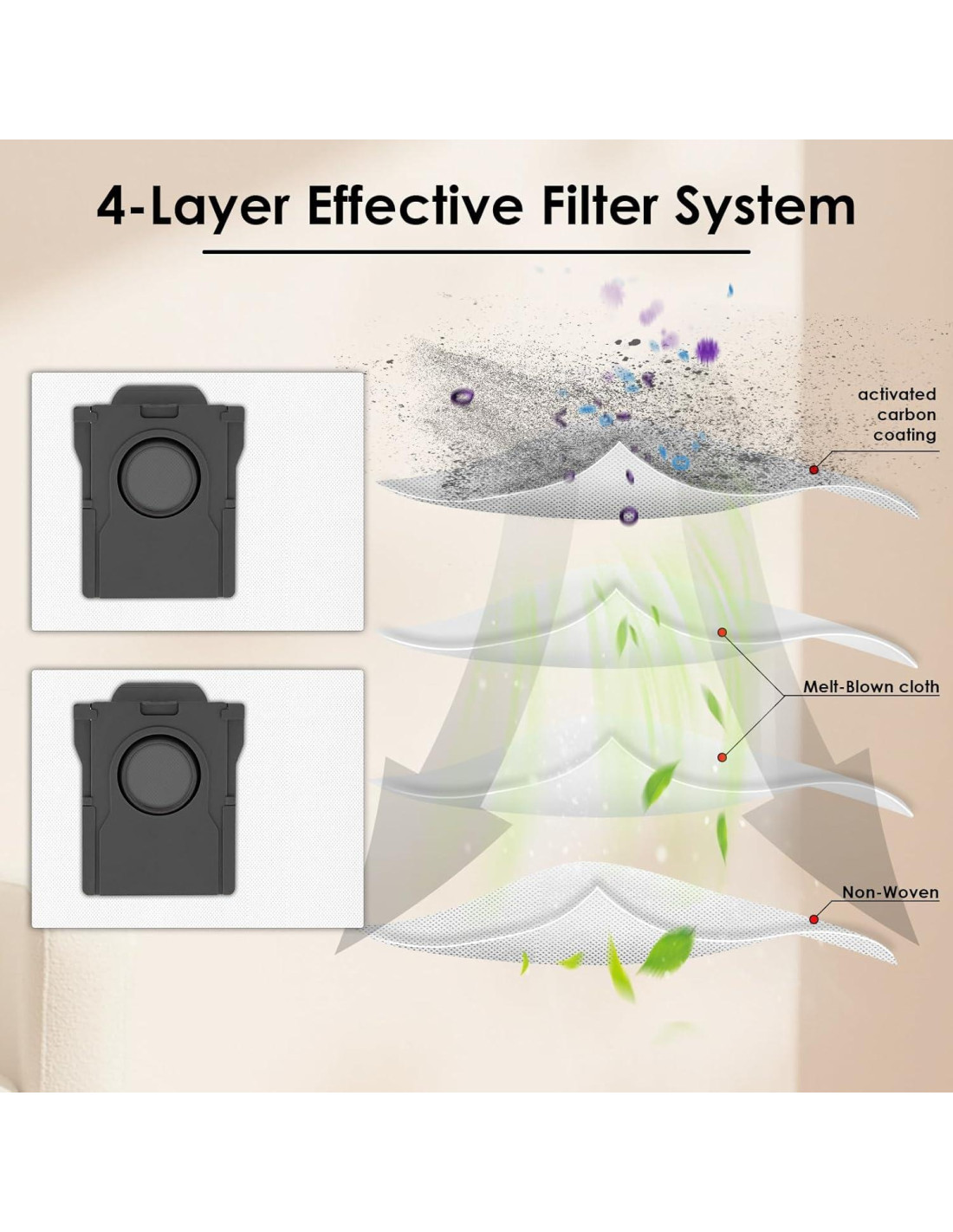 - Características especiales: Bolsas de polvo de alta calidad*12/ Perfectamente compatibles con Mova P50 Pro Ultra, P10 Pro Ultra, P10 Ultra, S20 Ultra robot aspiradora con estación de autovaciado/ Materiales de filtro de fibra fundida de primera calidad y telas no tejidas/ Instalación fácil/ Ecológico