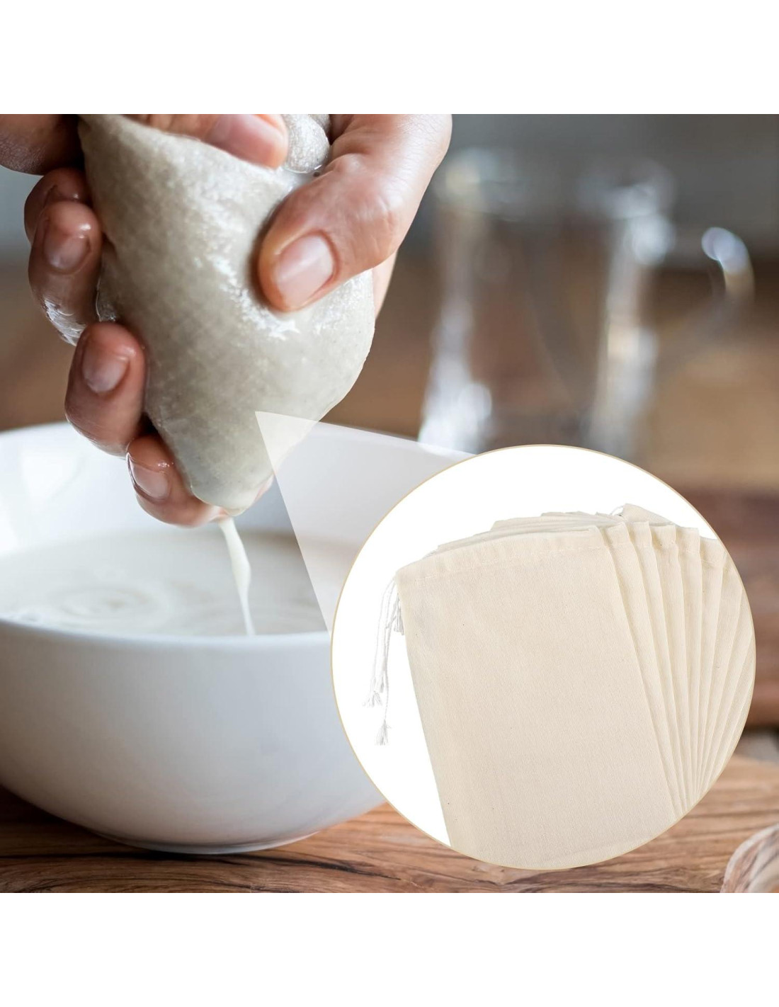 - Amplia gama de usos: estas bolsas de tela de queso son adecuadas para filtrar café, té, yogur, queso, sopa, hierbas, y también para filtrar jugo después de exprimir, etc., brindándote comodidad en la vida y facilitando tu cocina