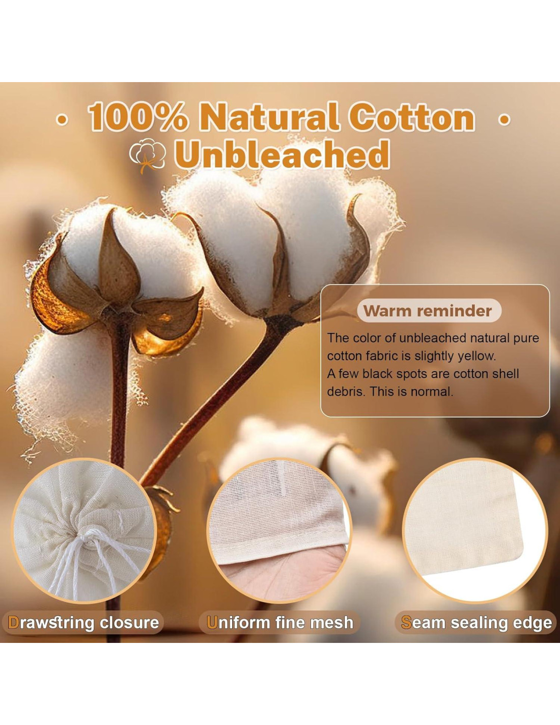 - Material de Algodón Natural Puro: Nuestras pequeñas bolsas de tela están hechas de 100% algodón sin blanquear, que es seguro y no tiene olor después de hervir. Algunas pequeñas manchas negras que pueden aparecer en la bolsa de algodón son semillas de algodón cuando se aplastan, simplemente lávalas antes de usar.