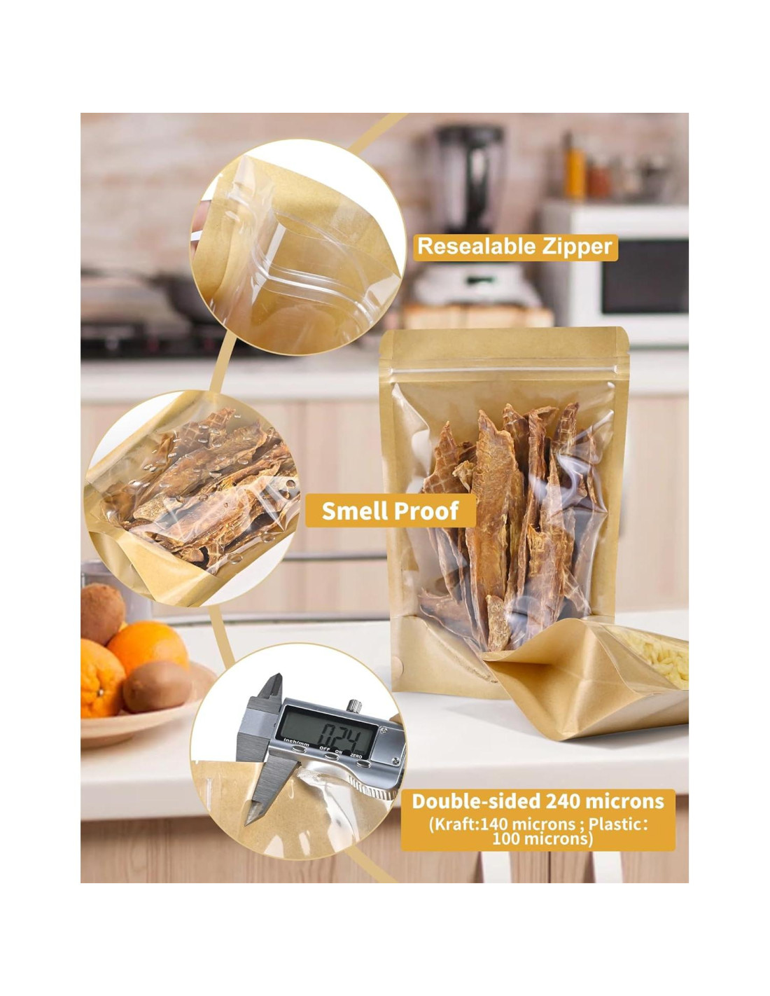 - Cantidad y Material: El paquete incluye 100 piezas de bolsas de pie de kraft. Dimensión exterior: 3.5*5.5 pulgadas (8.9*14 cm), Dimensión interior: 2.9*3 pulgadas (7.4*7.6 cm); Hechas de papel kraft y plástico de grado alimenticio, que es inodoro, reutilizable y a prueba de humedad, mantiene la frescura de sus productos. Bolsas prácticas para empacar productos. Tenga en cuenta que el tamaño es pequeño, verifique el tamaño antes de ordenar