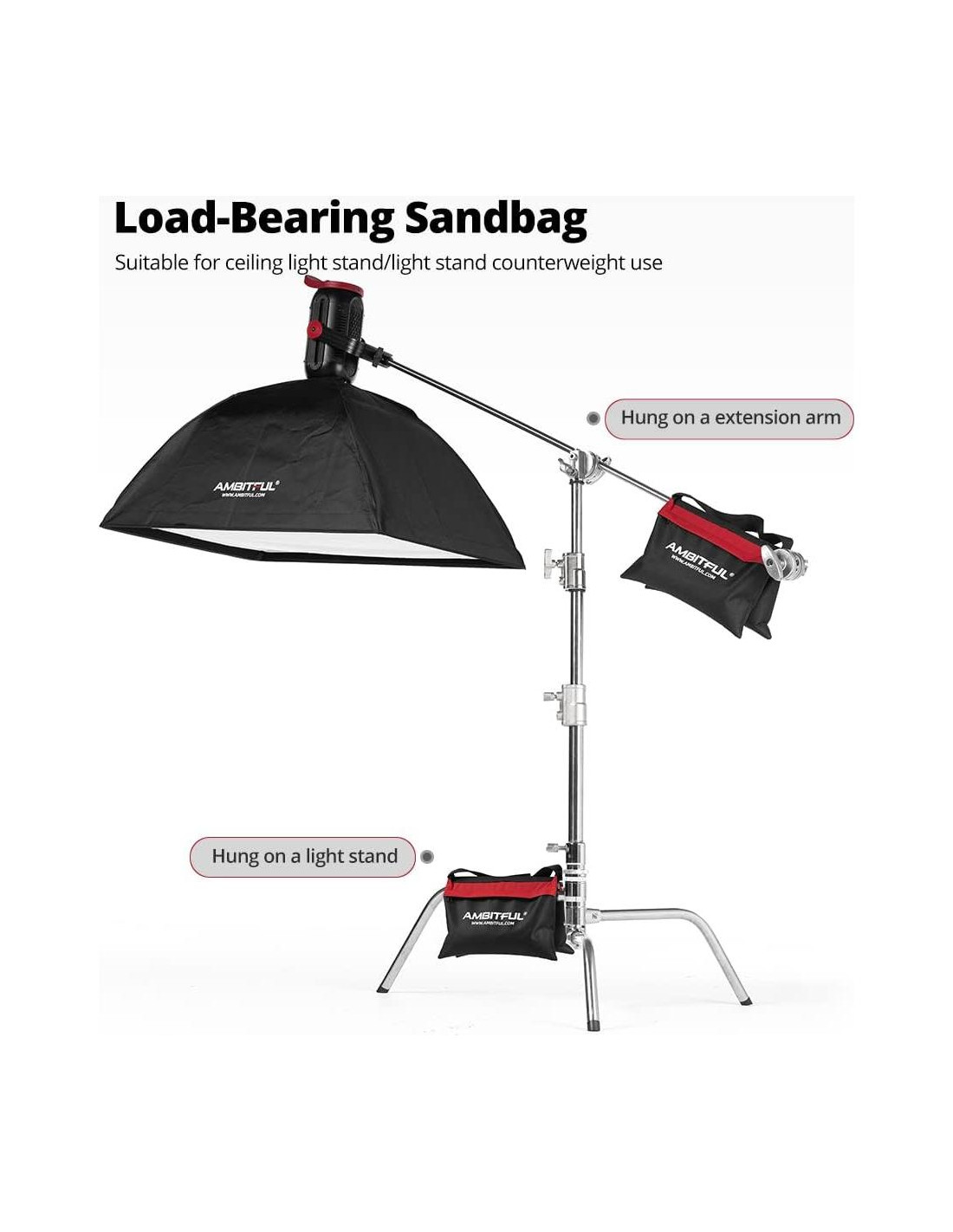 - Diseño de bolsa de silla para fácil manejo y fácil movimiento. Soporta hasta 11KG (25 lbs) de bolsa de arena. Aumenta la estabilidad del equipo de filmación.