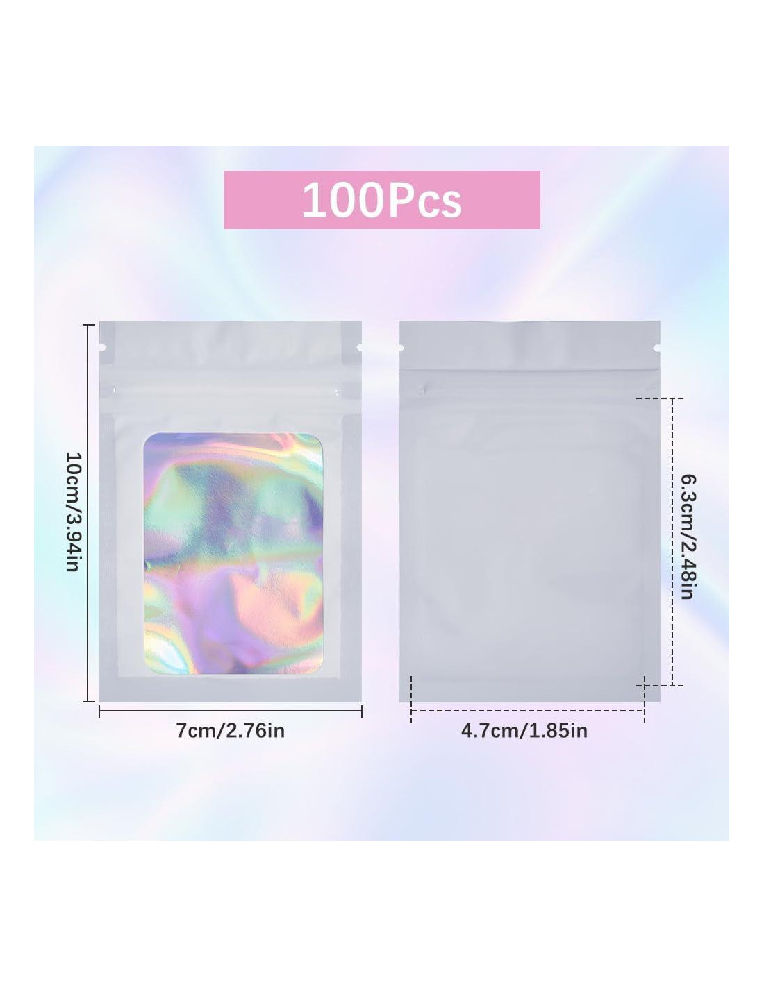 - Tamaño y Contenido: Bolsas holográficas x 100pcs: 10 x 7cm(3.94 x 2.76 pulgadas)