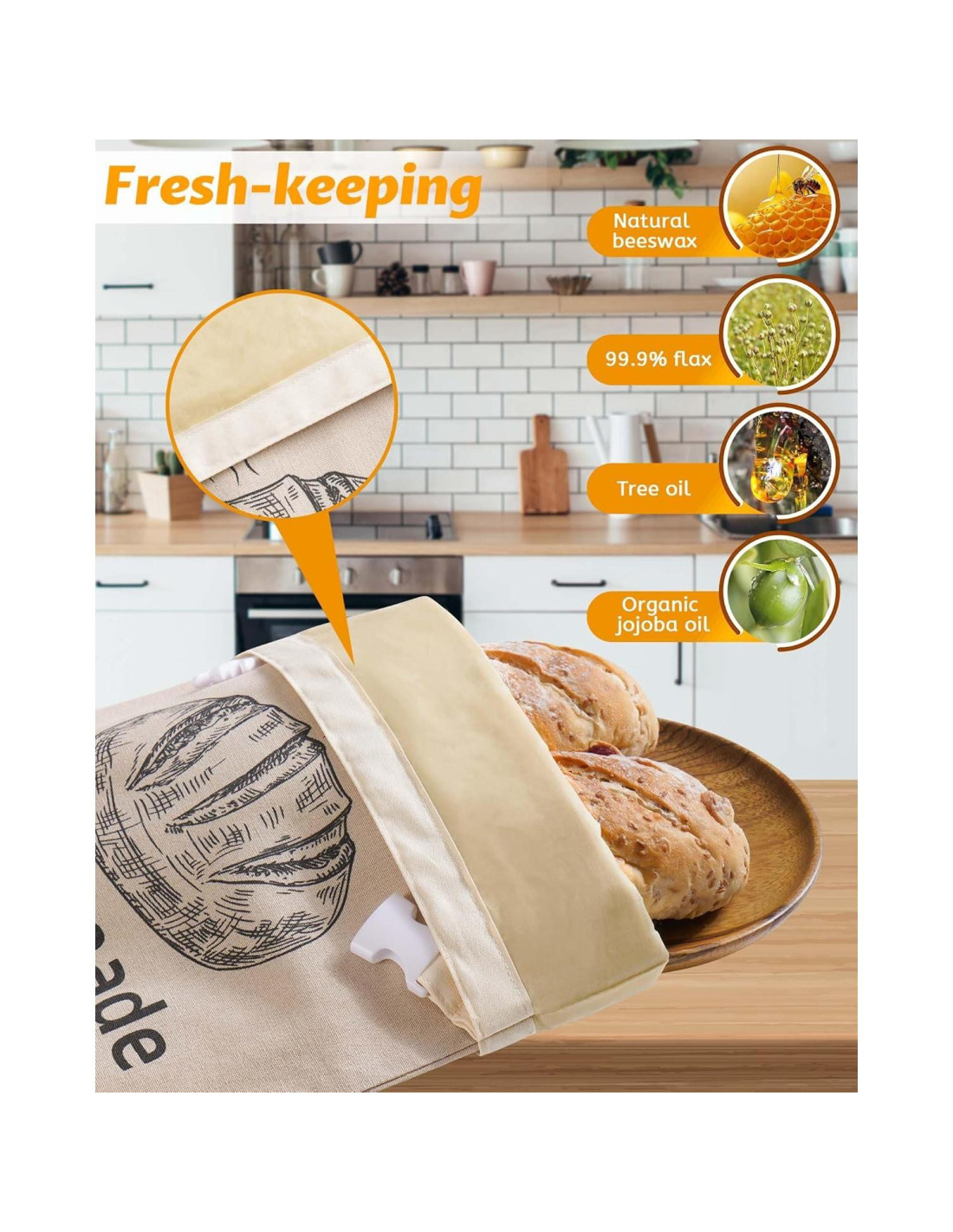 bolsas de pan de cera de abeja son ideales para el almacenamiento diario de pan casero, masa madre y baguettes.