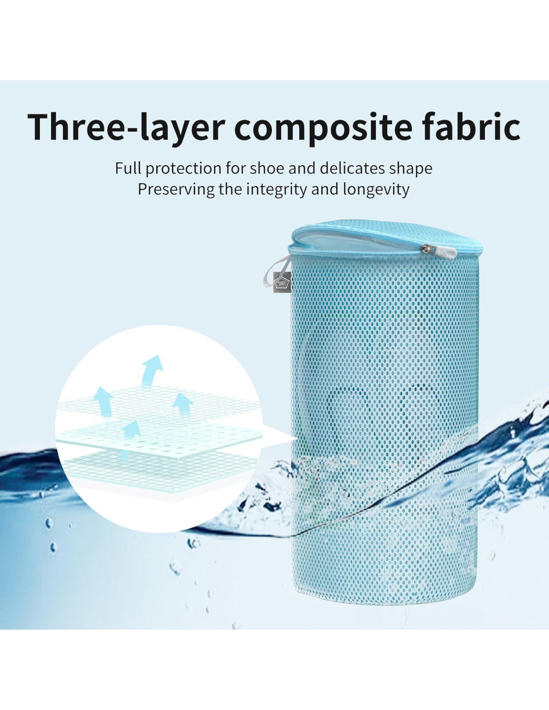 - [Diseño de Malla] : Hecha con tela de malla sandwish, asegura un flujo de agua suave mientras que el grosor aumentado mejora la fricción entre los zapatos y la bolsa, mejorando la eficiencia de limpieza. Durante el proceso de lavado, protege eficazmente los zapatos deportivos, previniendo daños o deformaciones.