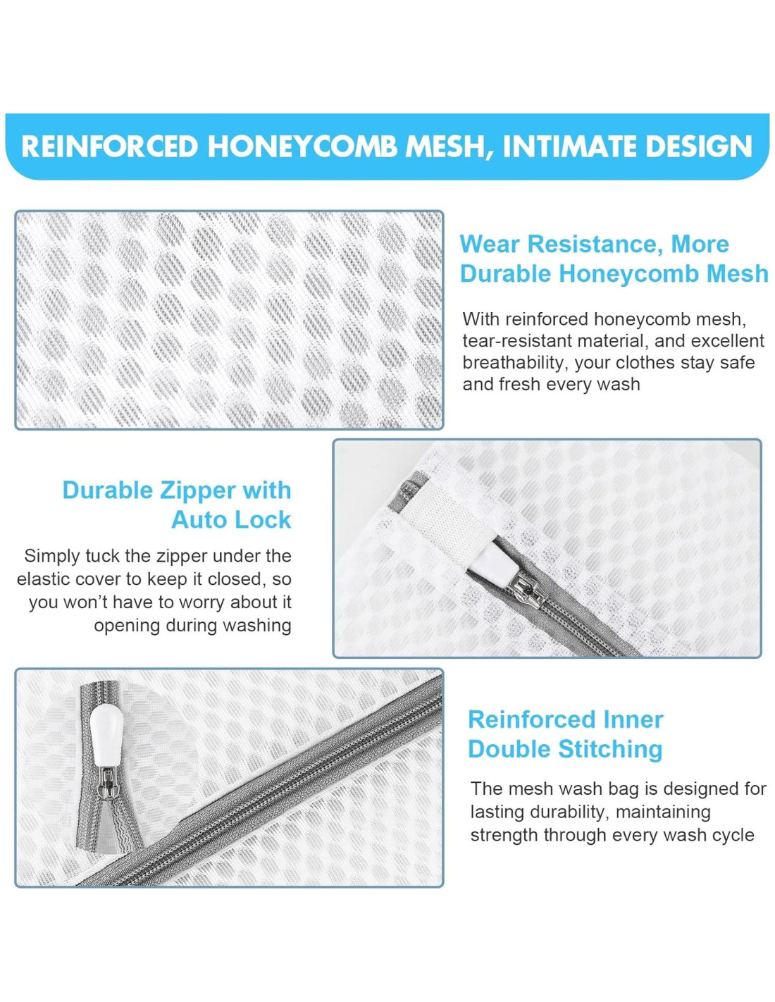 - Materiales premium y cierre de cremallera con bloqueo automático: Hechas de malla duradera que protege tu ropa; con la cremallera de bloqueo automático asegurada bajo el anillo elástico, la bolsa permanece cerrada durante el lavado; nuestras bolsas de lencería para lavar delicados proporcionan protección adicional
