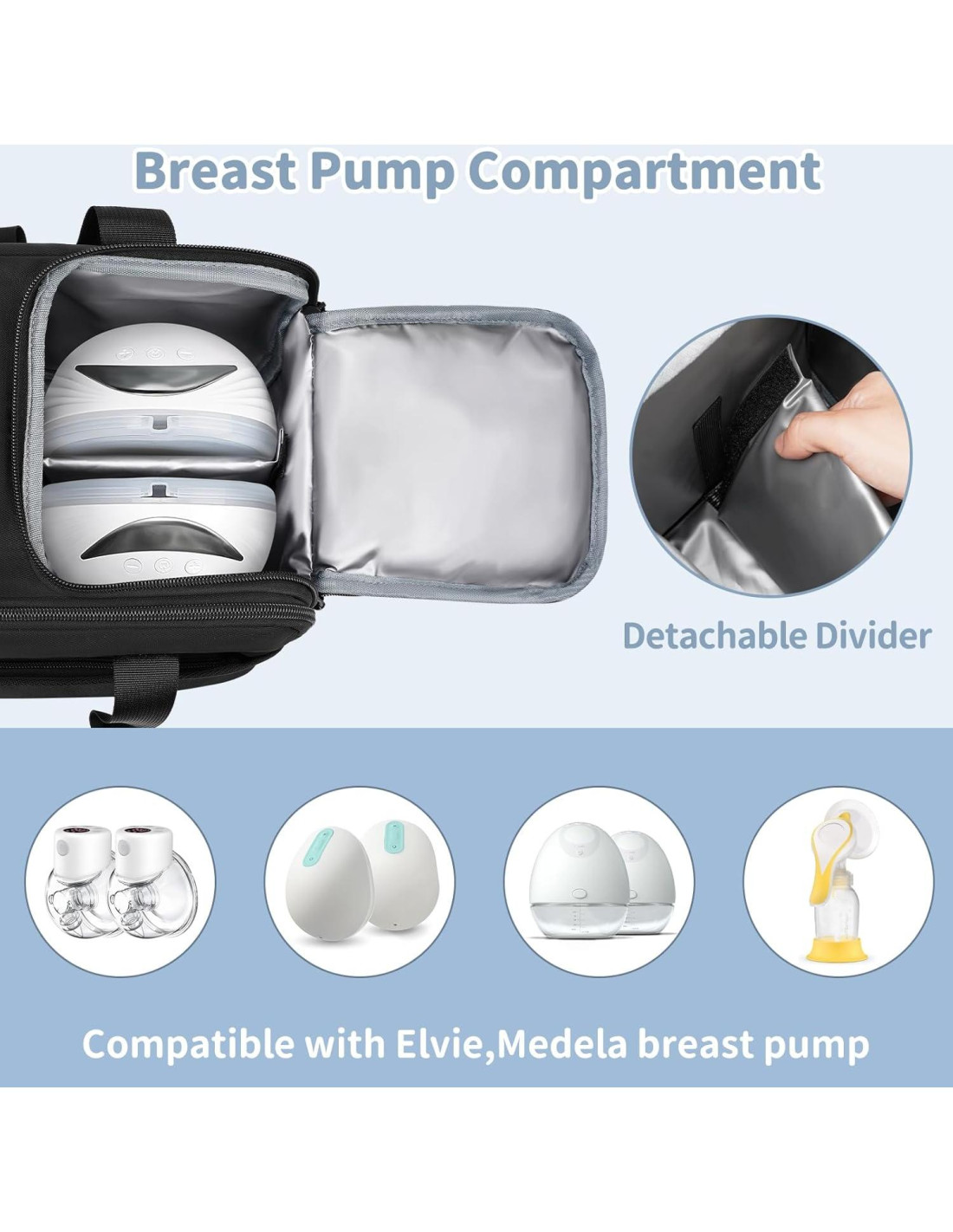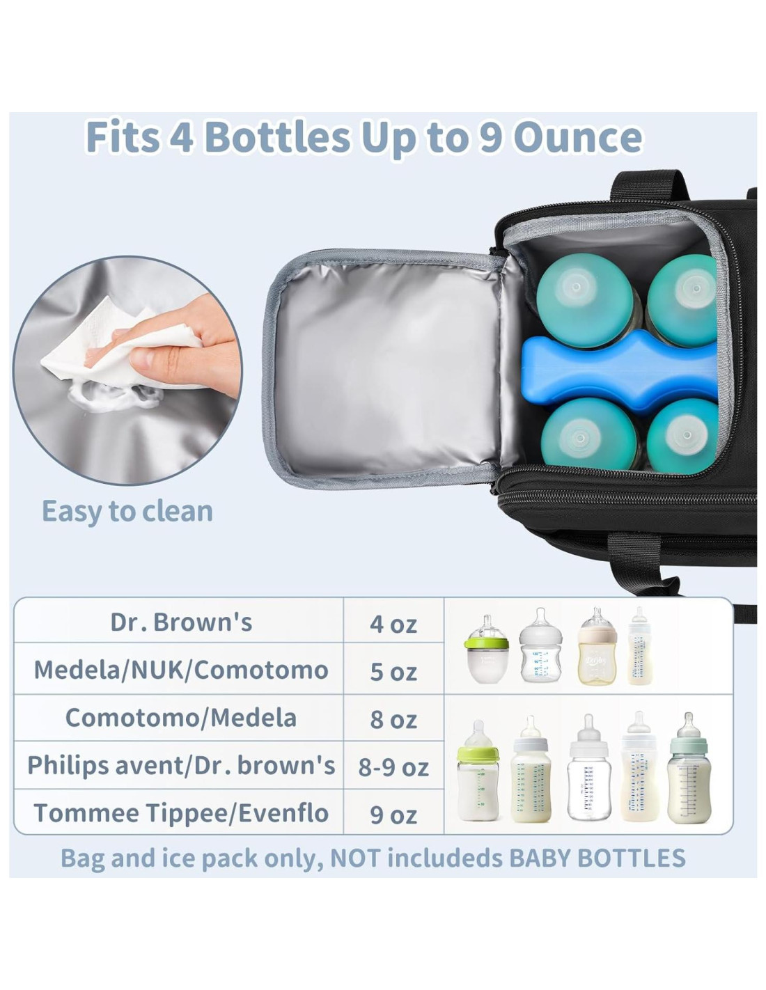 - GRAN CAPACIDAD: Bolsa de viaje para leche materna Tamaño: 29.2 * 20.3 * 21.6 cm. La sección del lado izquierdo tiene un compartimento enfriador para 4 biberones de hasta 266 ml y un paquete de hielo para mantener la leche fresca durante 6-8 horas. Esta bolsa enfriadora de leche materna es compatible con biberones Dr. Brown's/Comotomo/Philips avent/Medela, etc. (Solo bolsa y paquete de hielo, no incluye biberones.)