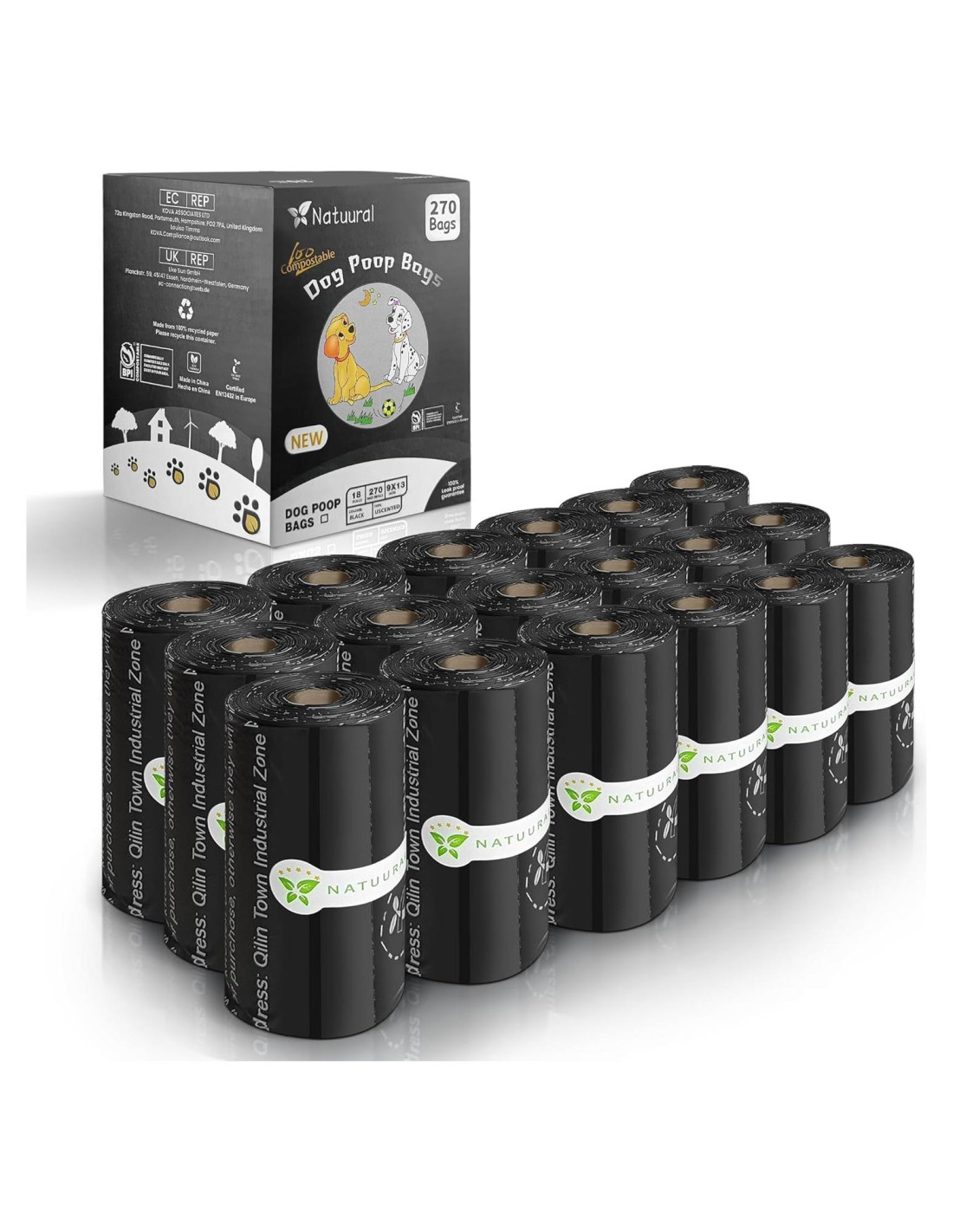 - [Paquete de Gran Valor] Paquete natural de 270 bolsas de desechos para perros (18 rollos, 15 bolsas por rollo) ¡un paquete de valor puede proporcionar más de 4 meses!