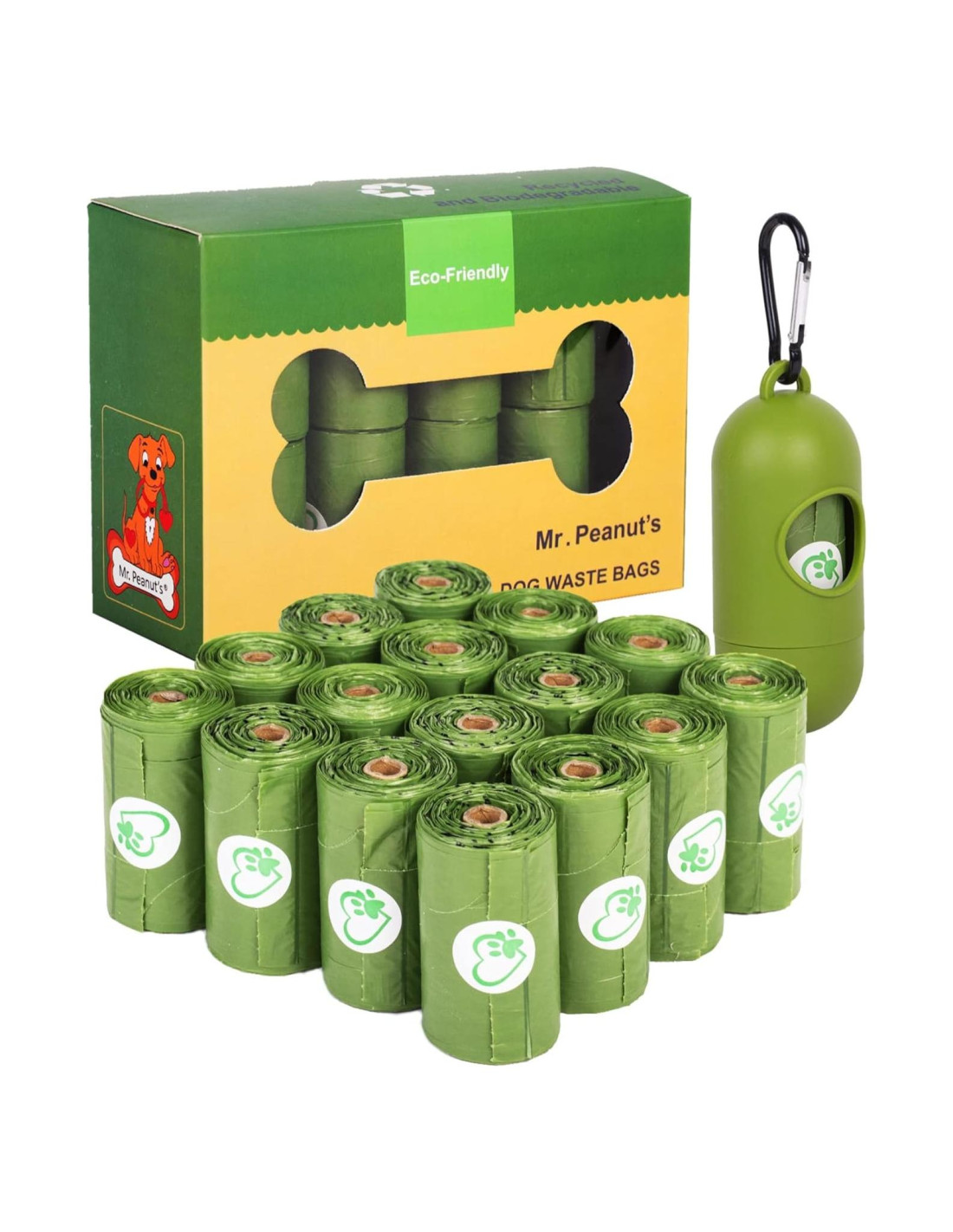 Dispensador de bolsas de desechos incluido. Sacar a tu perro para su paseo diario debería ser una experiencia libre de estrés y placentera. La organización adecuada y tener todos los artículos que necesitas son una gran parte de hacerlo así. Estas bolsas están diseñadas para adaptarse a los recolectores de desechos de Mr. Peanut. Las bolsas se producen a partir de desechos vegetales. La eliminación de los desechos de tu perro será algo de lo que ya no tendrás que preocuparte con este paquete de 160 bolsas de desechos para perros de Mr. Peanut, suministrado con un dispensador de bolsas y un clip de correa resistente. Tu perro no tendrá que esperar a que te organices, todo lo que necesitas está al alcance de tu mano. Las bolsas a prueba de fugas se ajustan fácilmente sobre la cabeza del recolector de desechos para permitirte recoger los desechos de tus mascotas y luego desecharlos en el cubo de basura sin fugas, derrames ni olores. Mr. Peanut's se inició hace unos años mientras mi Boston Terrier, Peanut, también conocido como Mr. Peanut, pasaba por algunos problemas médicos en etapa avanzada que llevaron a la enfermedad renal. Peanut tuvo una vida encantada, y no quería que su pérdida fuera en vano. Me inspiró a crear un nuevo tipo de negocio, uno que proporciona productos de alta calidad y seguros para mascotas y humanos por igual, pero también un negocio compasivo que da tanto como sea posible para ayudar a otras mascotas y animales de todo tipo a vivir sus vidas libres de abusos humanos. Paga un refugio de mascotas hacia adelante, es el "brazo" benéfico del negocio, y a través de este programa dono productos y fondos a rescates, refugios y organizaciones benéficas para animales de todo tipo y tamaño. Regularmente dono productos en los EE. UU., pero también trabajo con organizaciones que distribuyen productos y necesitan ayuda para animales en todo el mundo, ya que los animales no ven fronteras nacionales creadas por el hombre. El objetivo comercial de Mr. Peanut's siempre ha sido, y siempre será, ayudar a los animales de todo tipo a vivir vidas positivas, así de simple, desde gatos y perros hasta ganado y vida silvestre. Todos los animales sintientes merecen eso de los humanos, y siempre lucharé la buena batalla.