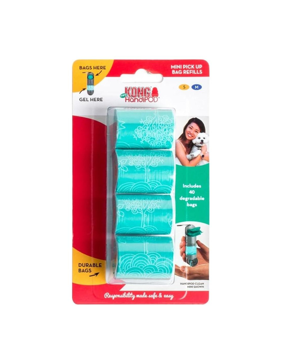 Descripción del Producto Las Recargas de Bolsas para Recoger Excrementos KONG HandiPOD están hechas para rellenar las bolsas de desechos para perros en la gama KONG HandiPOD. Las bolsas de desechos biodegradables tienen un diseño duradero para recoger con confianza los excrementos de perro y asas para atar y sostener fácilmente cuando están llenas. El conjunto contiene: 4 x Rollos de Bolsas de Excremento