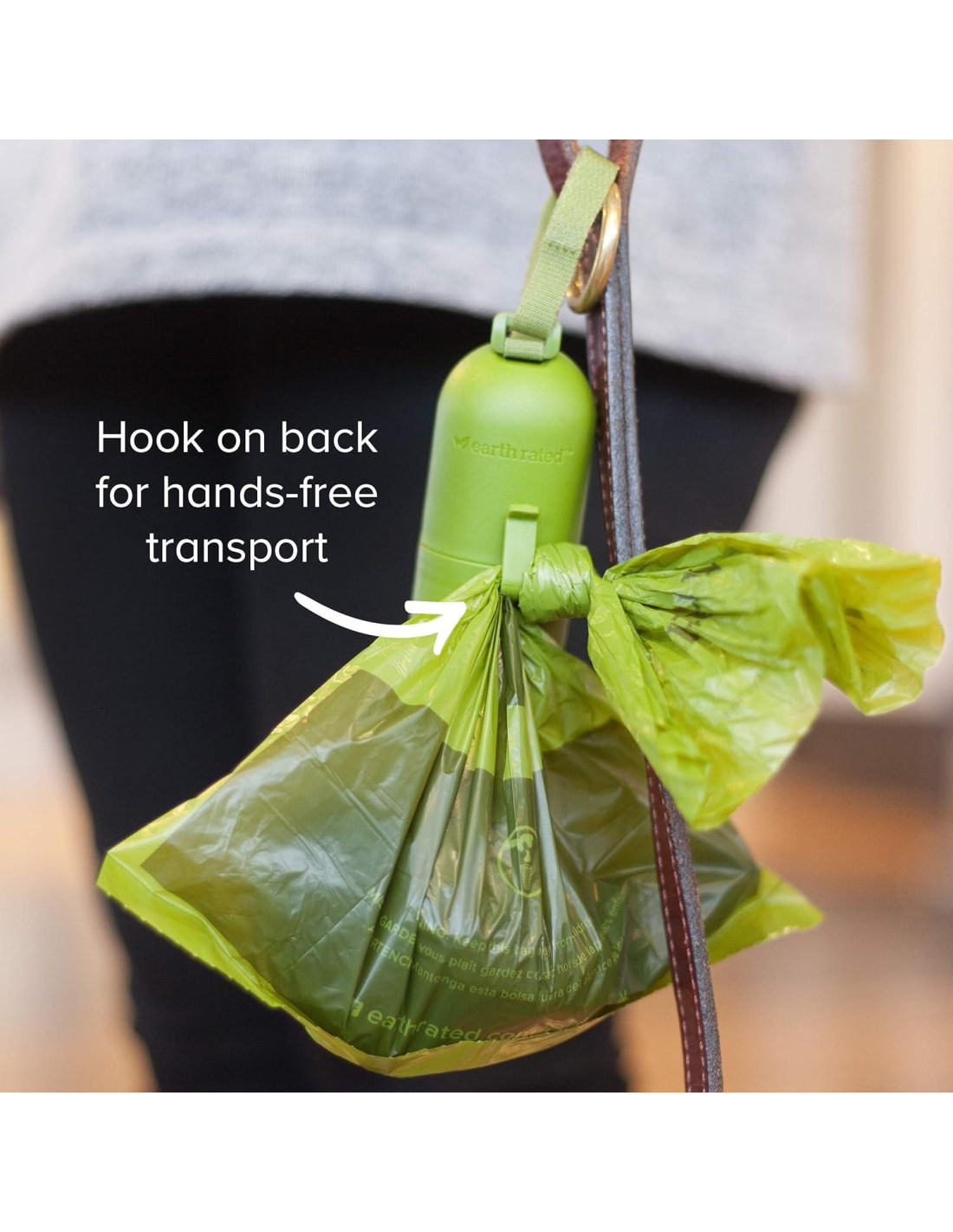 Tenemos perros y sabemos que cuando es hora de hacer sus necesidades, ¡quieres estar listo con un dispensador de bolsas de desechos para perros duradero adjunto a tu correa! Por eso ofrecemos nuestro increíble dispensador de bolsas para excremento de perro Earth Rated para estilos de correa de cualquier tipo. Tiene una correa que se puede ajustar para adaptarse a cualquier tamaño de correa, así que puede ir a donde tu cachorro quiera llevarte. Sabemos que a veces nuestros perros pueden 'hacer' en los lugares más inconvenientes, por eso diseñamos nuestro soporte para bolsas de excremento con un gancho en la parte posterior, así que una vez que hayas recogido, sostendrá la bolsa por ti para que puedas continuar tu paseo mientras mantienes tus manos libres. Nuestro dispensador Earth Rated y las bolsas para excremento son la mejor pareja poderosa que existe, y hemos incluido un rollo de repuesto de 15 bolsas con aroma a lavanda para que comiences. Después de todo, sabemos a dónde van tus manos, y queremos que se mantengan limpias y libres de excremento con las mejores bolsas para excremento que hay. También garantizamos que nuestras bolsas para excremento de perro son 100% a prueba de fugas, extra gruesas y resistentes. Los detalles adicionales son importantes para nosotros, por eso los núcleos internos de nuestros rollos están hechos con materiales reciclados y nuestro dispensador está hecho de plástico reciclable #5. Hemos logrado crear algunos productos increíbles porque amamos a los perros y amamos lo que hacemos, así que esperamos que los pruebes y nos digas si tienes algún comentario.