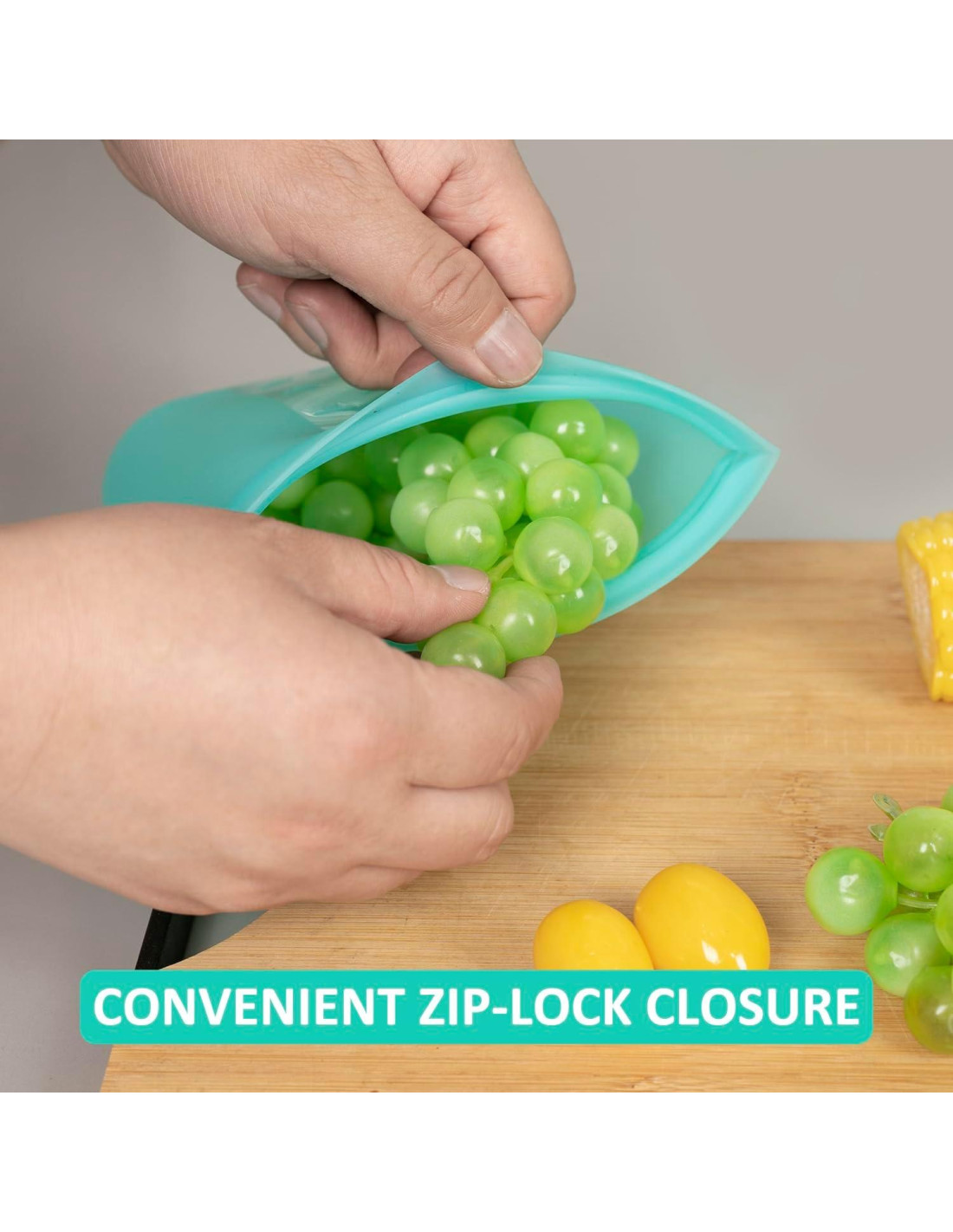 - [100% SILICONA - SEGURA Y FIABLE] Hechas de silicona 100% apta para alimentos, nuestras bolsas de ziplock para snacks son libres de PVC, plomo, cloro, ftalatos y BPA. No tóxicas e inodoras, ofrecen un almacenamiento seguro de alimentos para tu familia. Diseñadas con durabilidad en mente, su material grueso y construcción robusta aseguran un uso prolongado. Ligeras y convenientes para el uso diario, son la solución de almacenamiento ideal.