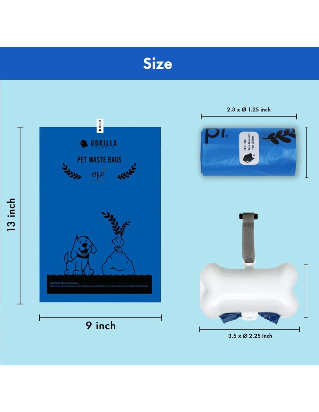- 1000 bolsas para excremento (50 rollos con 20 bolsas por rollo) con 1 dispensador patentado en forma de hueso, suficiente para más de un año de uso. Cada bolsa grande para desechos de mascotas mide 23 cm x 33 cm, lo que es suficiente capacidad para perros y gatos de todos los tamaños.