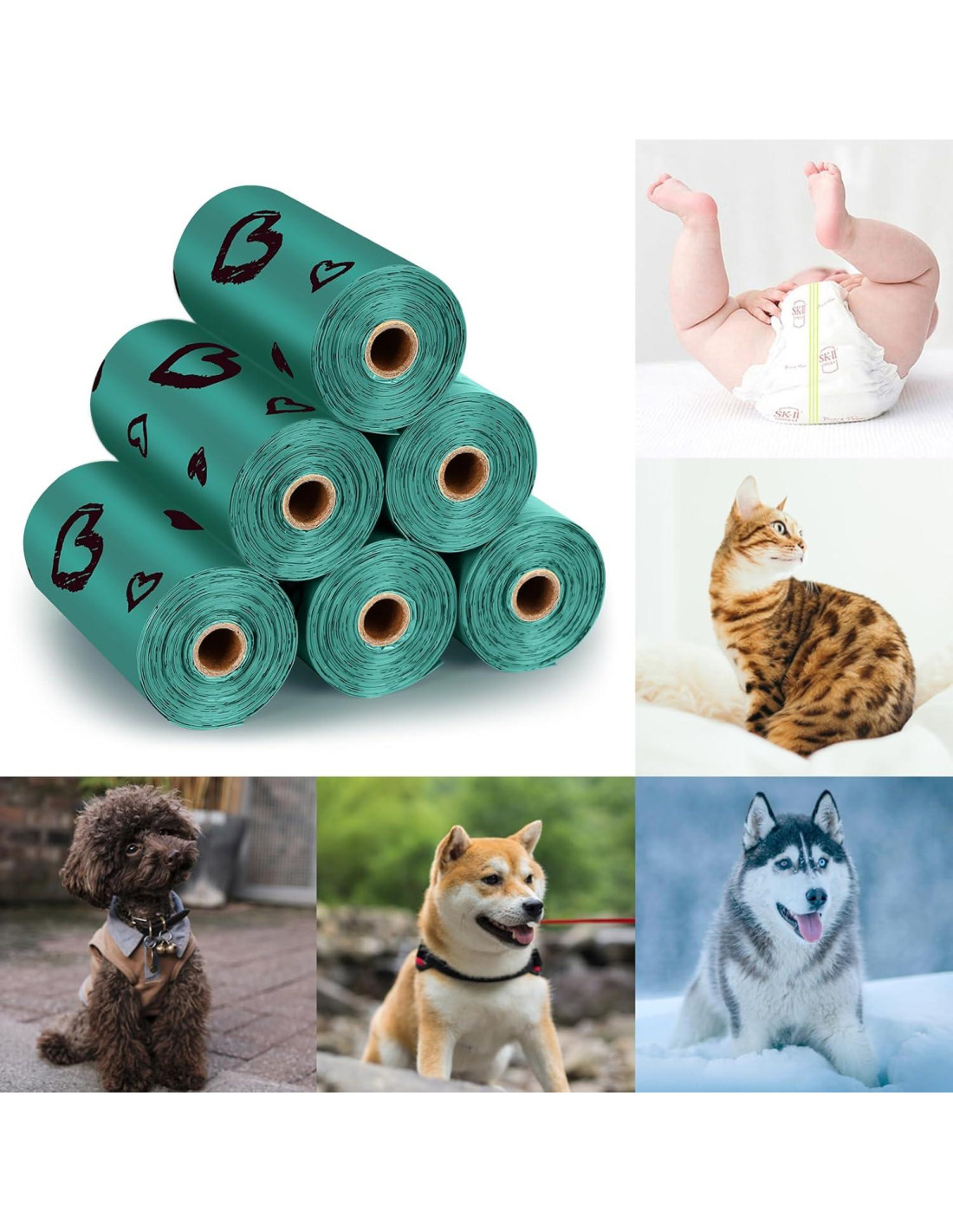 - [Bolsas para excremento aromatizadas] Bolsas para excremento con control de olor y aroma fresco para perros de todos los tamaños, las bolsas para excremento de perro también se pueden usar para limpiar la arena de gatos, pañales sucios de bebés, restos de comida o desechos de automóviles.