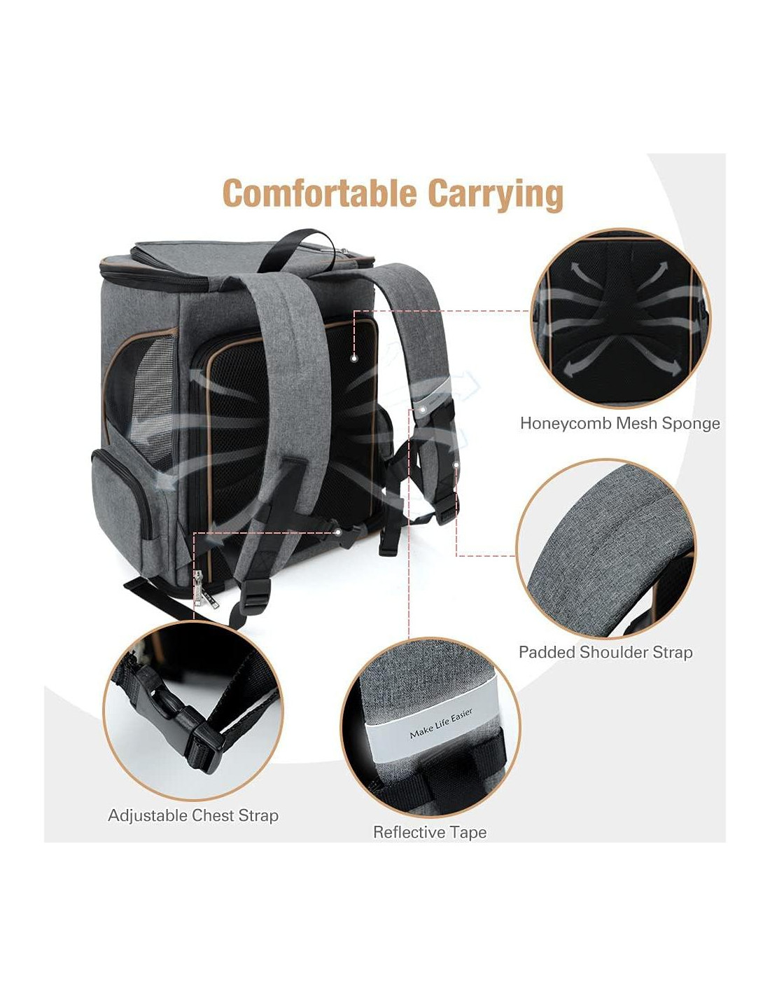 - [Amigable para Viajar] - Mochila para mascotas portátil con panel trasero transpirable, correas de hombro ajustables acolchadas y hebilla en el pecho para viajar, hacer senderismo, caminar y actividades al aire libre, la verdadera mochila transportadora para gatos.