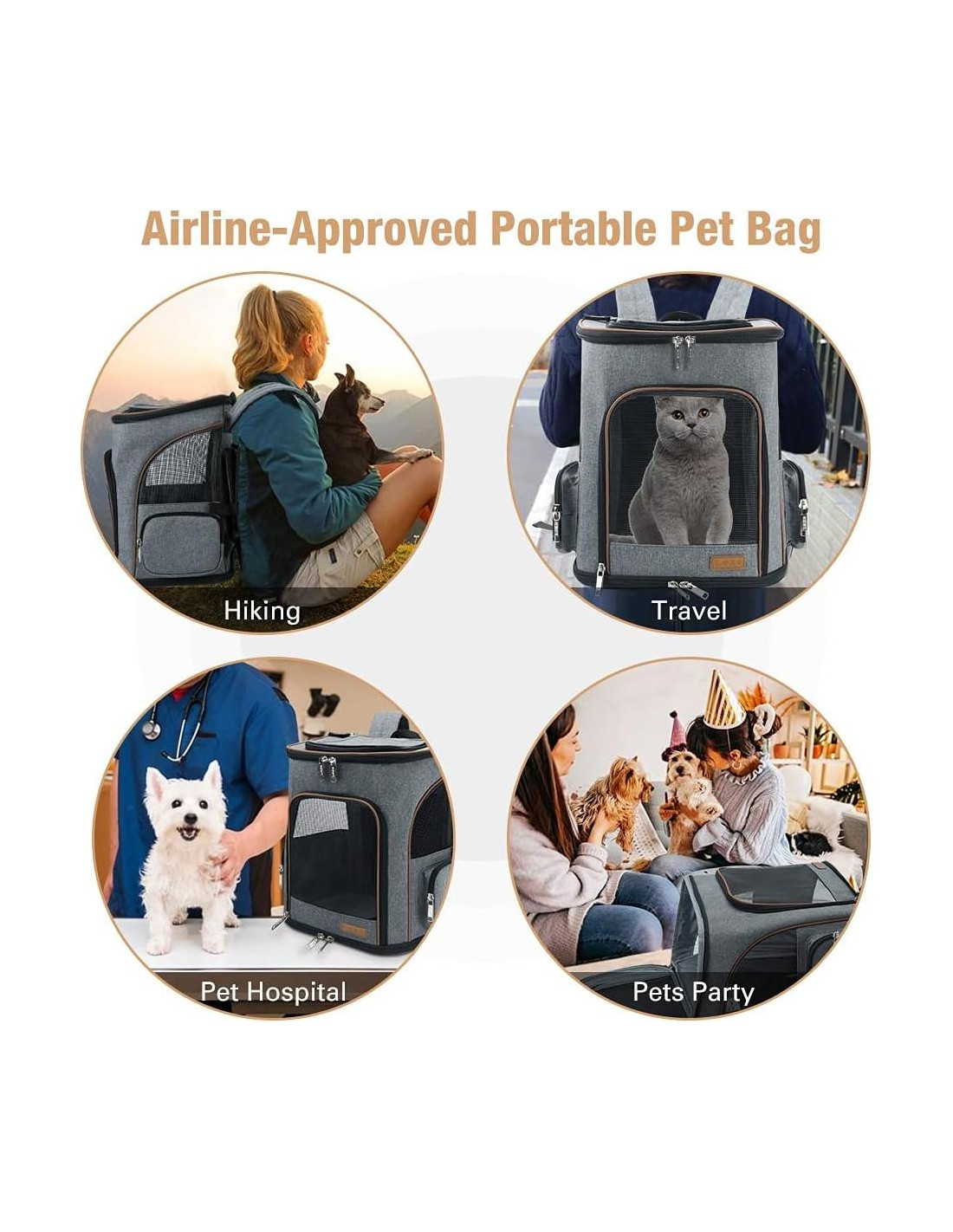 - [Premium y Funcional] - Hecha de poliéster de calidad y malla antiarañazos, esta mochila para gatos expandible es resistente y segura para sus mascotas. 2 bolsillos laterales para almacenar suministros para mascotas y una correa de seguridad incorporada para evitar que su mascota se escape.