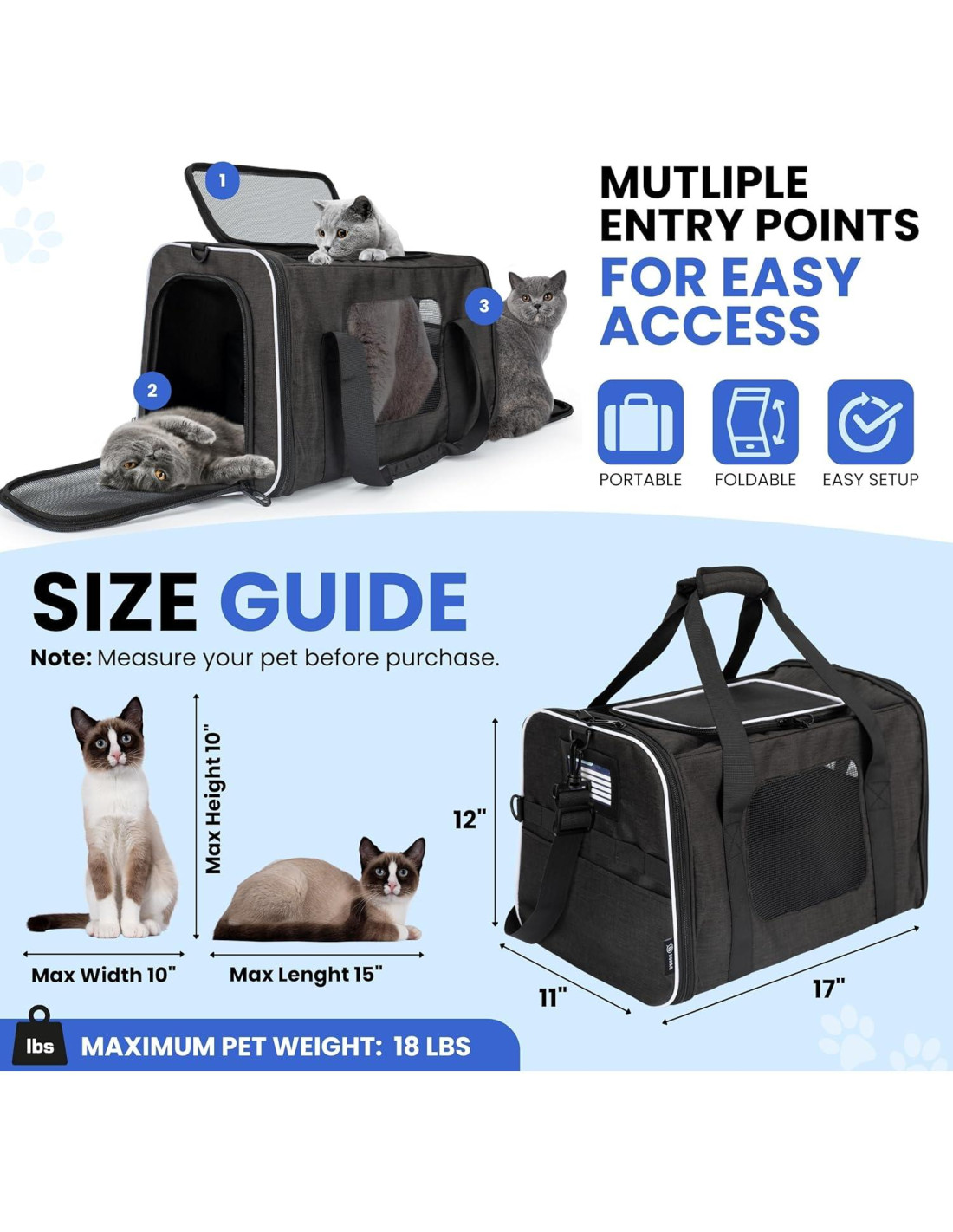 - Fácil de llevar: Nuestro transportín para gatos es fácil de llevar, perfecto para viajar con tus mascotas. Nuestro transportín para gatos cabe debajo de los asientos de avión, se ajusta en los asientos de coche y en habitaciones de hotel. El diseño de la bolsa elegante proporciona privacidad y discreción, haciendo que los viajes con tu gato sean sin estrés y convenientes.