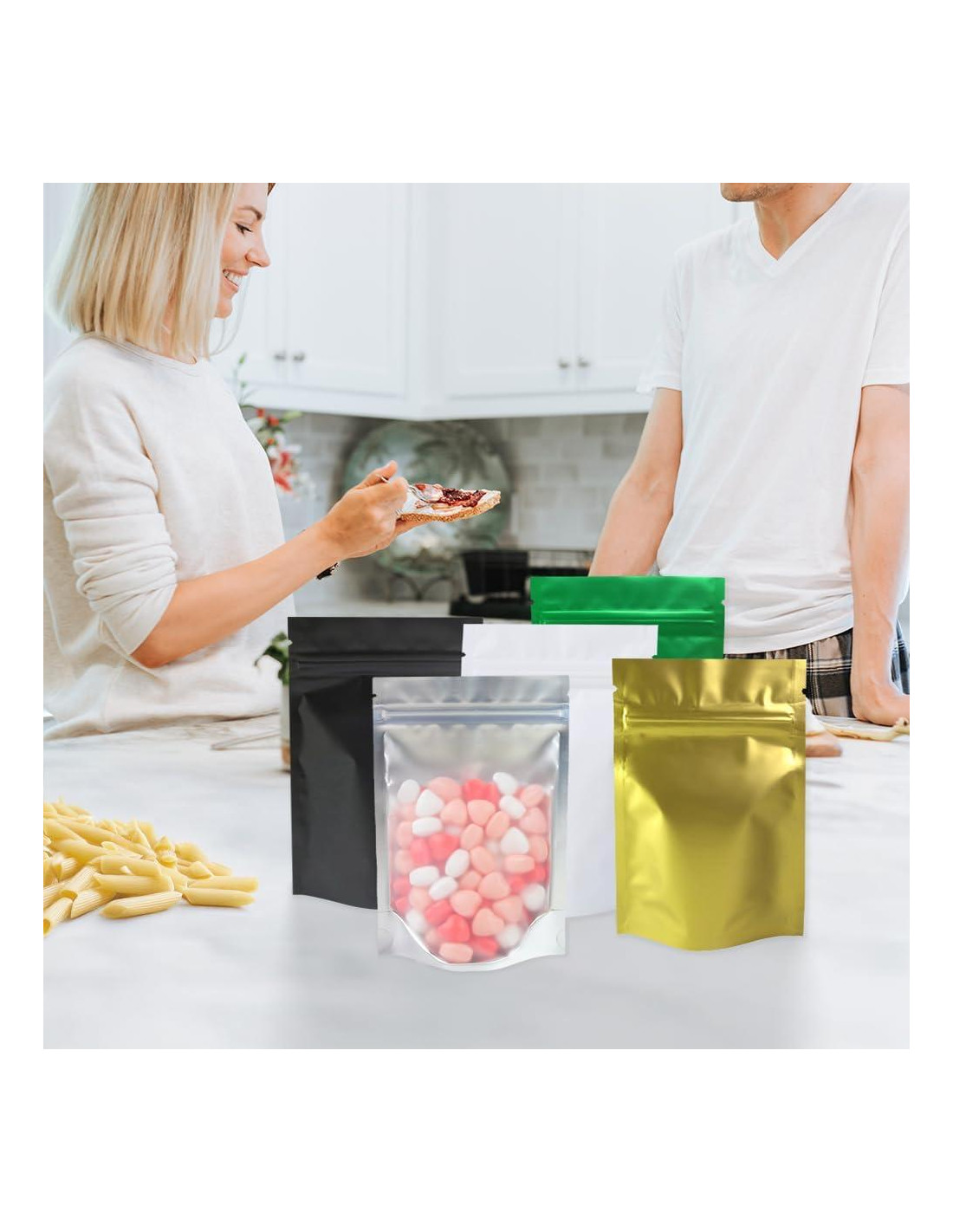 - Características especiales: Hermético, Reutilizable, A Prueba de Olores, De Pie