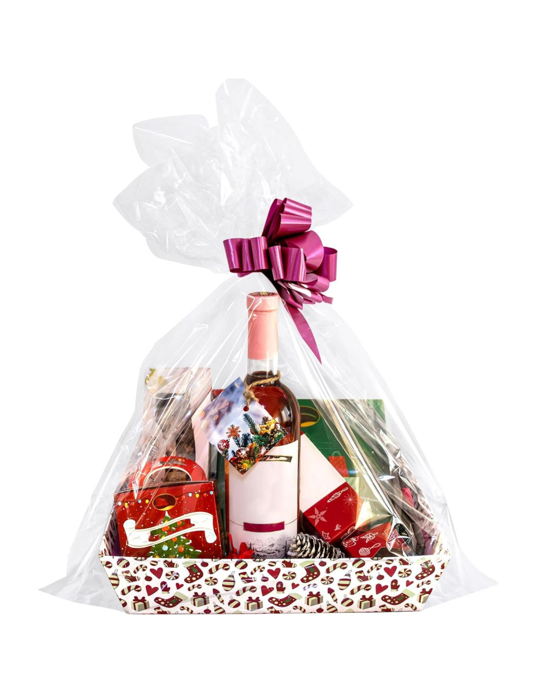 - Resistente: Las bolsas de regalo de celofán Morepack están hechas de plástico, son cristalinas y lo suficientemente gruesas para evitar rasgarse al envolver una cesta