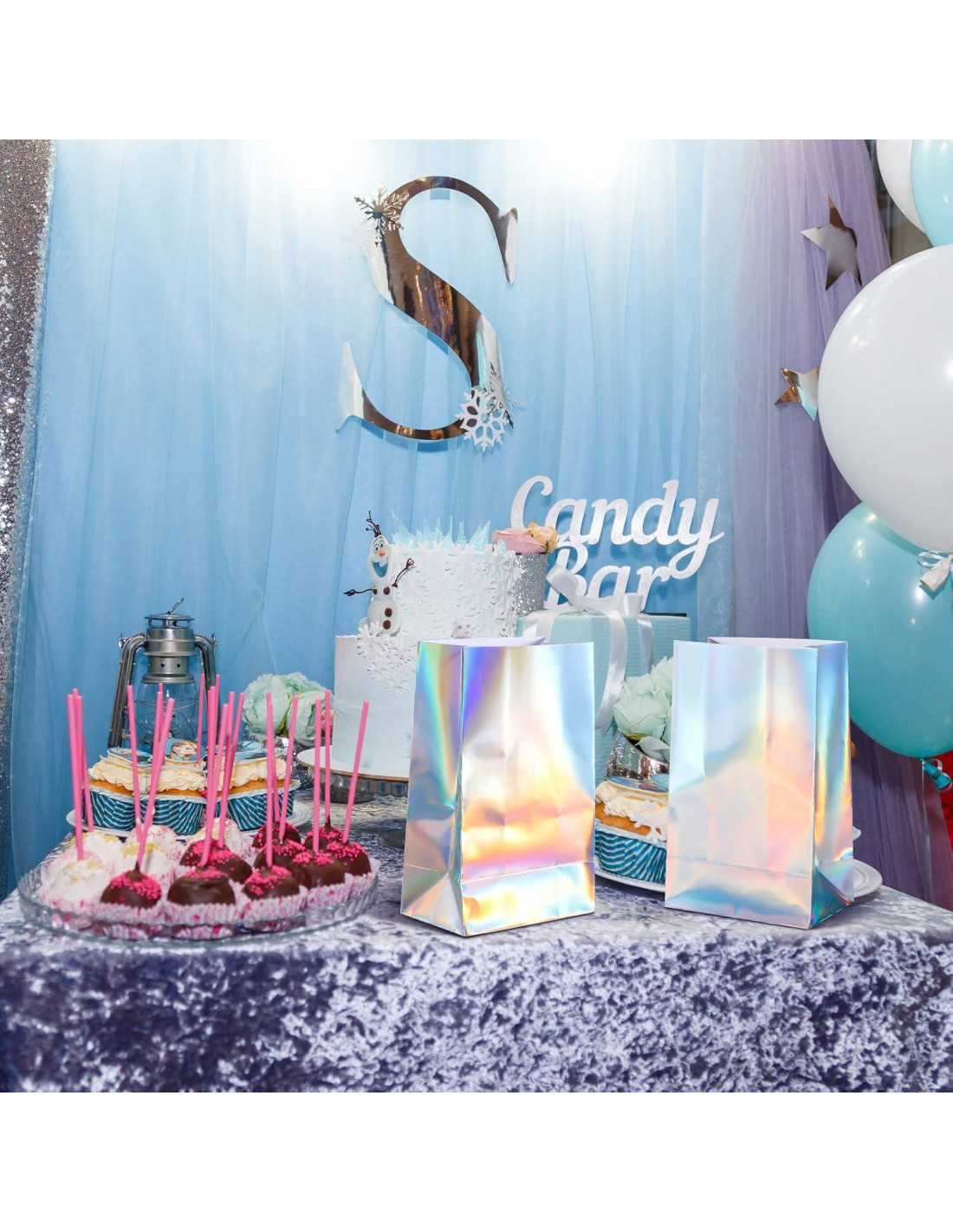 - Aplicaciones versátiles: las bolsas de papel iridiscentes son muy adecuadas para diversas fiestas temáticas, como fiestas de cumpleaños, bodas, despedidas de soltera, fiestas de sirenas, fiestas de San Valentín, día de la madre, u otras festividades, puedes usarlas para almacenar tus bocadillos y despachar a los invitados, más fácil de sostener y mantener los postres limpios