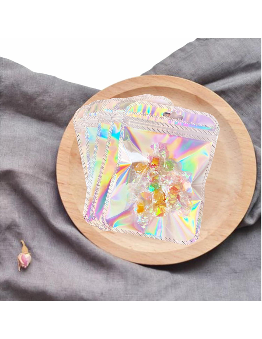 - Lindas Bolsas de Color Arcoíris Holográfico - Estas bolsas reutilizables para empaque tienen un efecto metálico de color arcoíris, que es genial para el empaque de productos para pequeñas empresas de color calle. Estas bolsas holográficas mantienen tus artículos limpios después de cerrarlas completamente, adecuadas para empacar pequeños accesorios de moda, muestras, ornamentos, decoraciones, tubos de brillo labial, bocadillos, caramelos, galletas, jabón, confeti, té, etc.