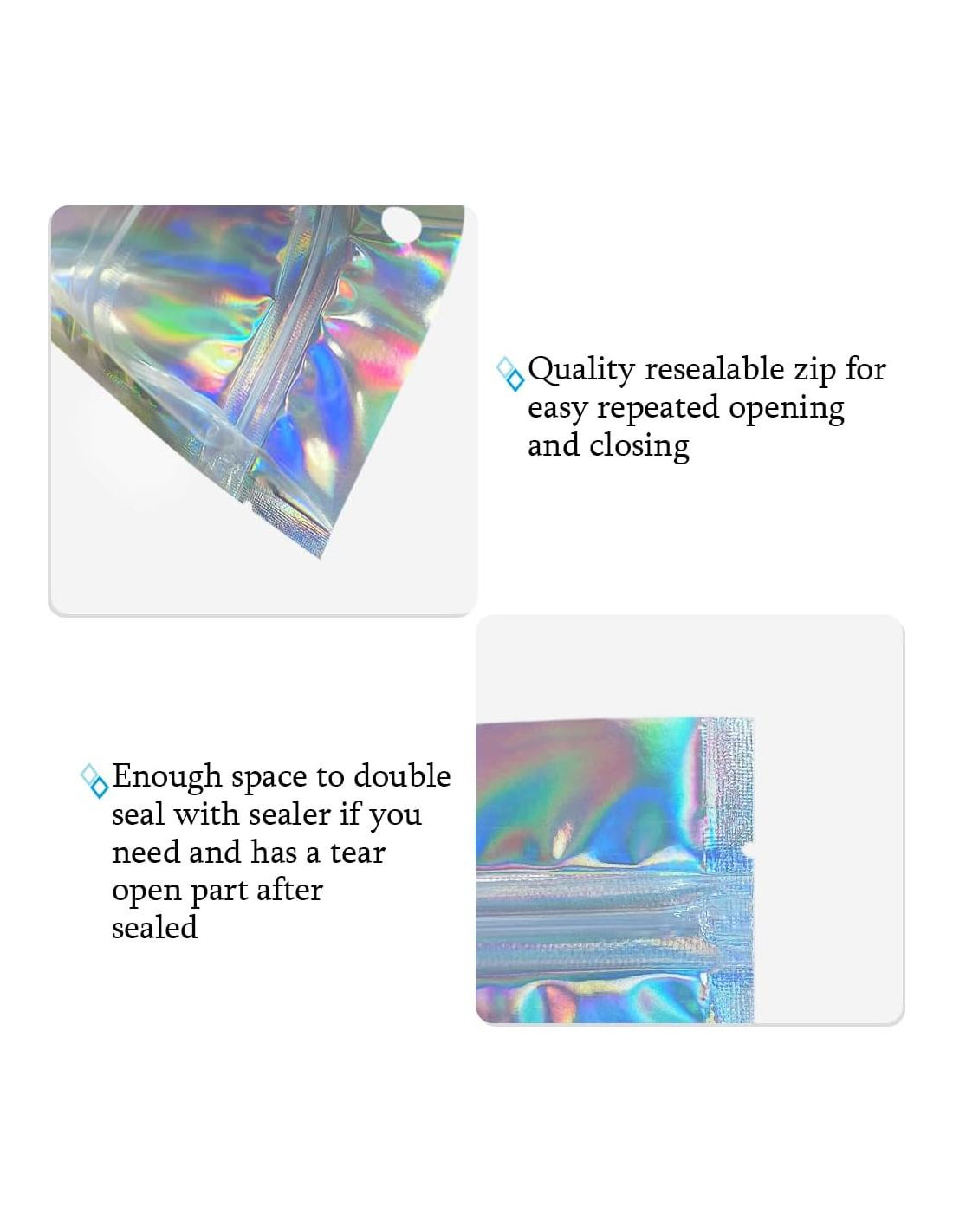 - Sellables por Calor y Reutilizables - Estas bolsas holográficas reutilizables de 5.5x7.8 pulgadas sellan herméticamente con cierre y son a prueba de olores, hay suficiente espacio para un doble sellado con un sellador si lo necesitas y tiene una parte para abrir a ras después de sellar