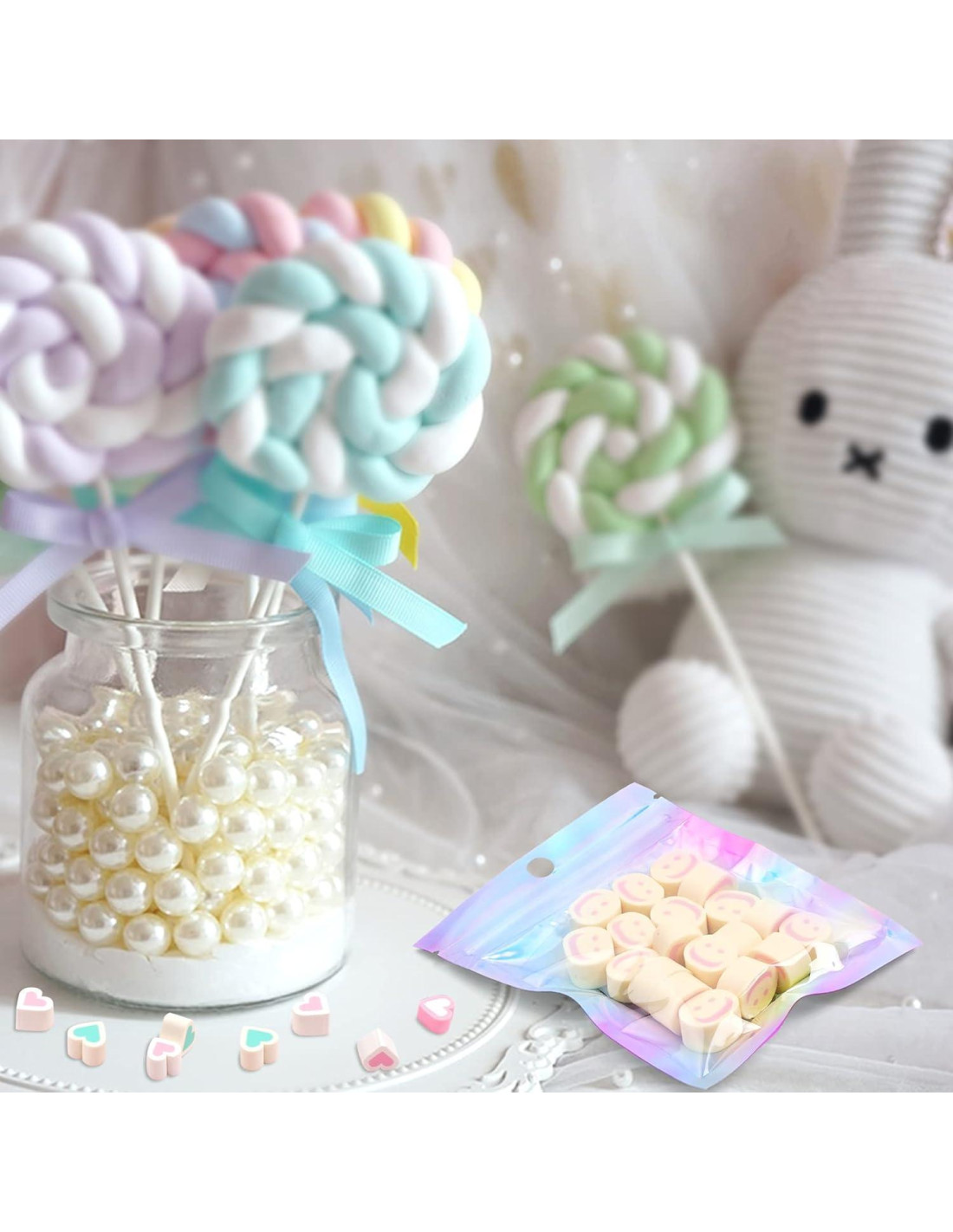 - [COLOR ARCOÍRIS HOLOGRÁFICO] - Nuestras bolsas de cierre con cremallera de papel de aluminio vienen con color arcoíris holográfico en la parte posterior y transparente en la parte delantera para mostrar el producto claramente. Cuando se exhiben en interiores, no necesitas mucha iluminación para ver el hermoso color arcoíris.