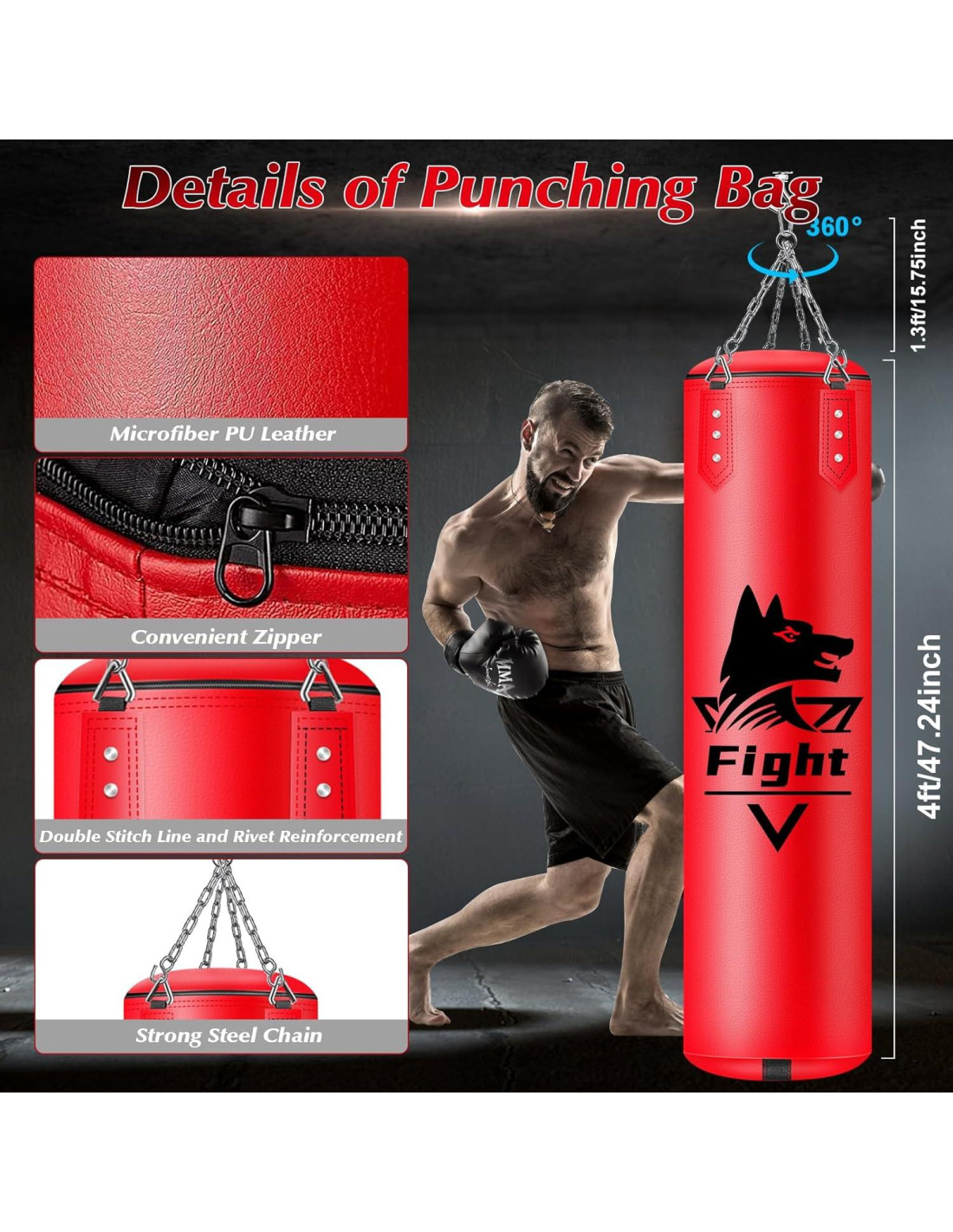 - Por Favor Tenga en Cuenta: La bolsa de boxeo colgante está vacía, puede llenarla con arena, ropa, trapos, espuma, astillas de madera, esponja, aserrín, tela de algodón desmenuzada y más. Pero tenga en cuenta que para proteger mejor la bolsa de boxeo y hacerla más duradera, no la llene solo con arena. Elija entre diferentes rellenos para satisfacer las necesidades tanto de boxeadores novatos como experimentados, preferiblemente no más de 36.3 kilogramos.