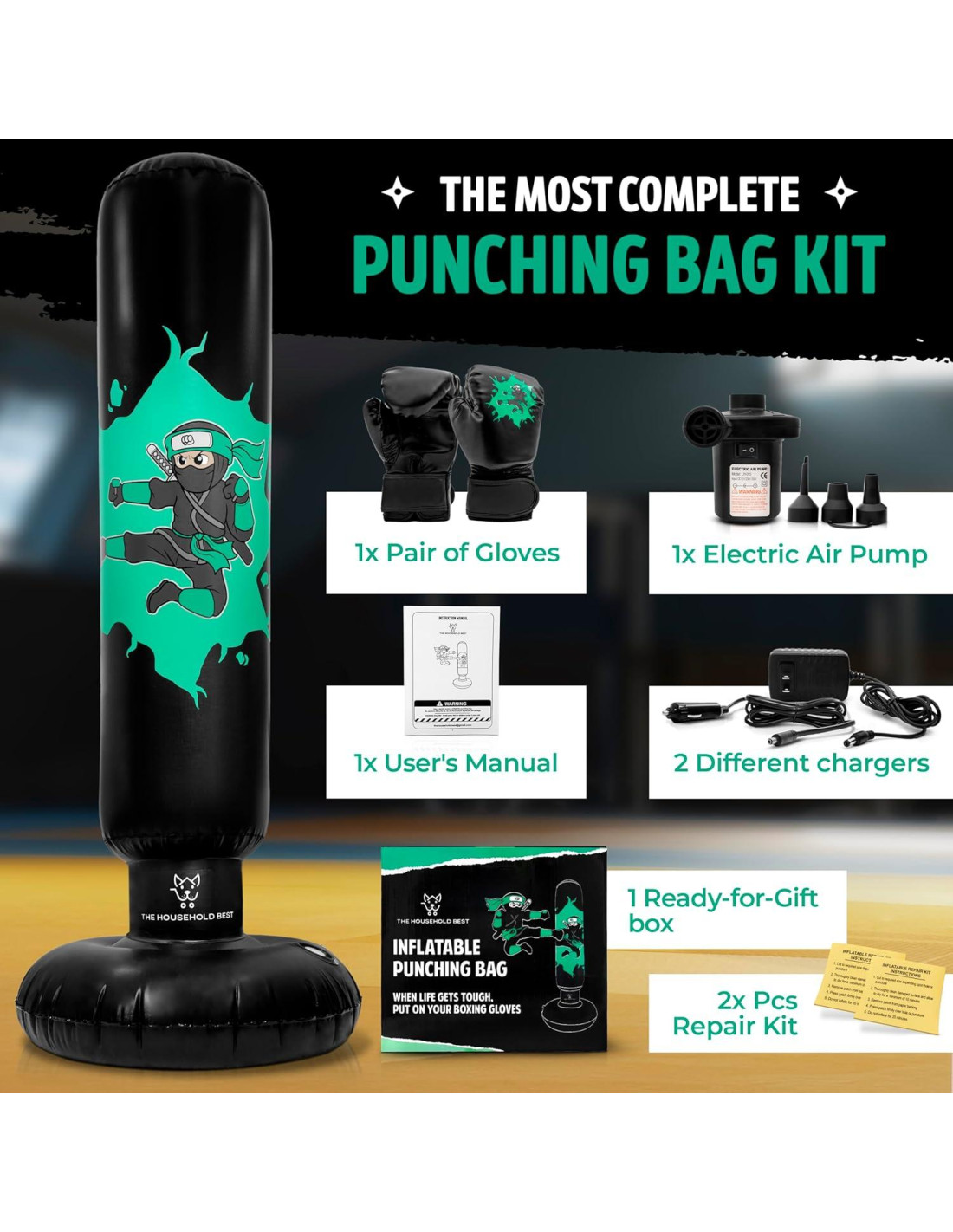 - Paquete Completo para Horas de Diversión: Su compra incluye un saco de boxeo de pie, un par de guantes de boxeo para niños de 3 a 8 años, una bomba de aire eléctrica (AC 230V - 50W) para una rápida inflación en casa o en movimiento, 2 piezas de kit de reparación para mayor durabilidad, un manual de usuario, una tarjeta de agradecimiento y una caja de regalo bellamente diseñada - perfecta para regalar o fácil almacenamiento