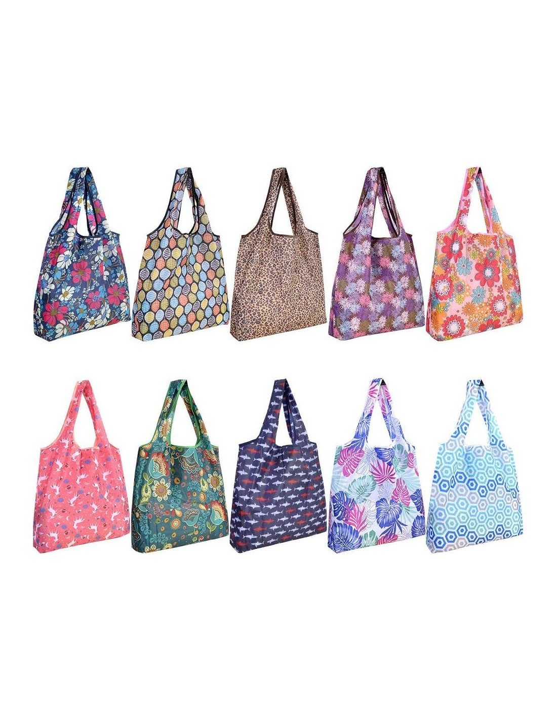 1.Material: tela de nylon 210D con costuras finas. 2.Volumen Grande: 60.5 cm (H) x 46 cm (L) x 7.9 cm (W). 3.Color: 10 colores y patrones diferentes para alegrar tu vida y impresionar a tus invitados como regalo de fiesta. Paquete Incluido: 10 bolsas de compras reutilizables diferentes. Plegables para Fácil Almacenamiento: Pliega estas bolsas de compras en la bolsa de tamaño de bolsillo adjunta para un fácil transporte y almacenamiento en tu bolso, carteras y automóvil, nunca olvides tus bolsas de compras reciclables nuevamente. Lavables y Ecológicas: Las bolsas de compras de tela de nylon se pueden lavar a máquina sin preocuparse por las manchas. Se secan fácil y rápidamente. Usa estas bolsas de compras reciclables para reducir los desechos en los vertederos y océanos, para proteger a nuestra madre tierra.