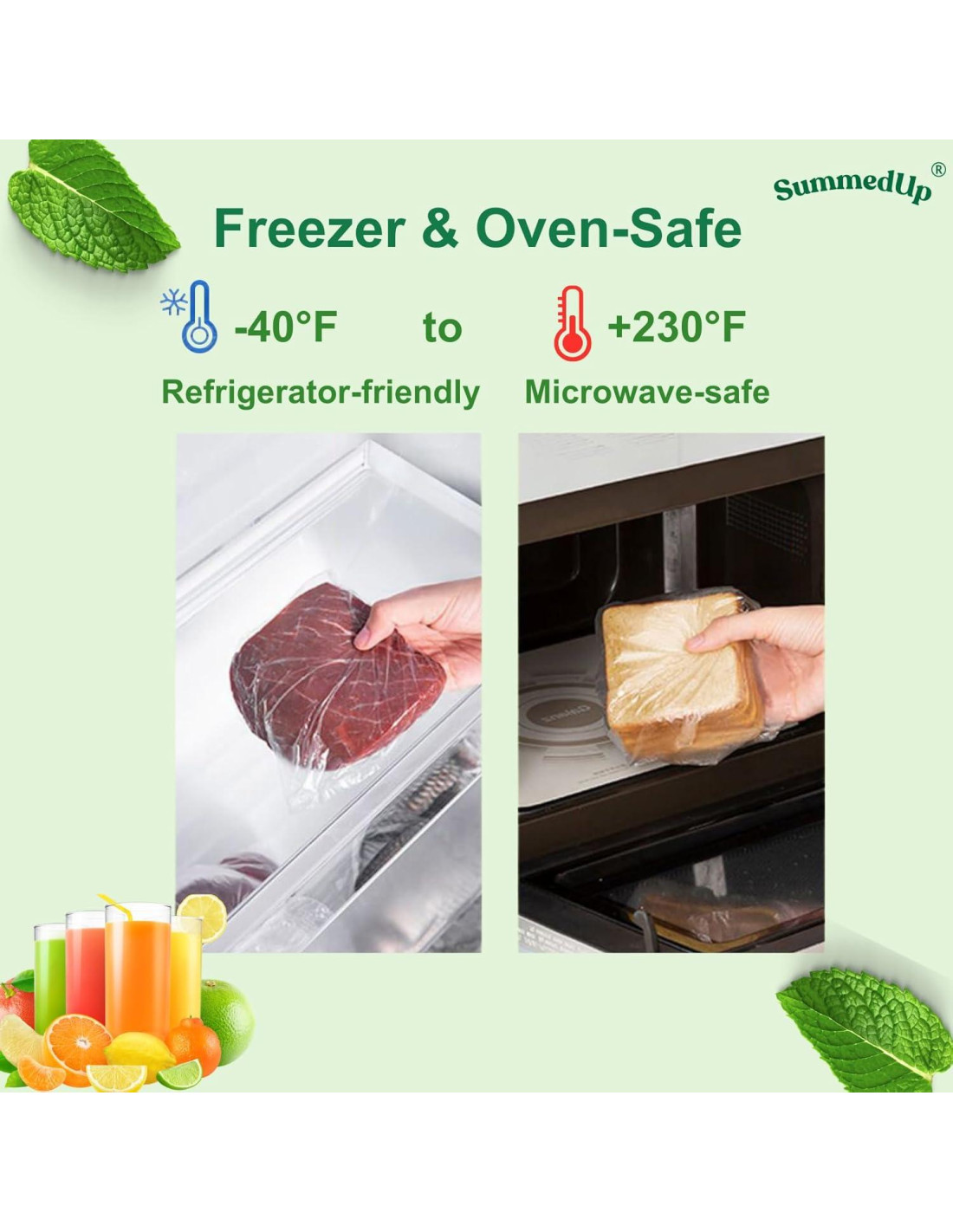 - Uso en el Hogar: Bolsas de almacenamiento de alimentos diseñadas para un almacenamiento seguro de alimentos, incluyendo recalentamiento seguro en microondas, almacenamiento de alimentos cocidos, verduras, frutas, agua y hielo. Ideales para usar durante picnics y convenientes para almacenamiento de alimentos portátil. El rollo de bolsas plásticas también se puede usar para empacar ropa mientras viajas