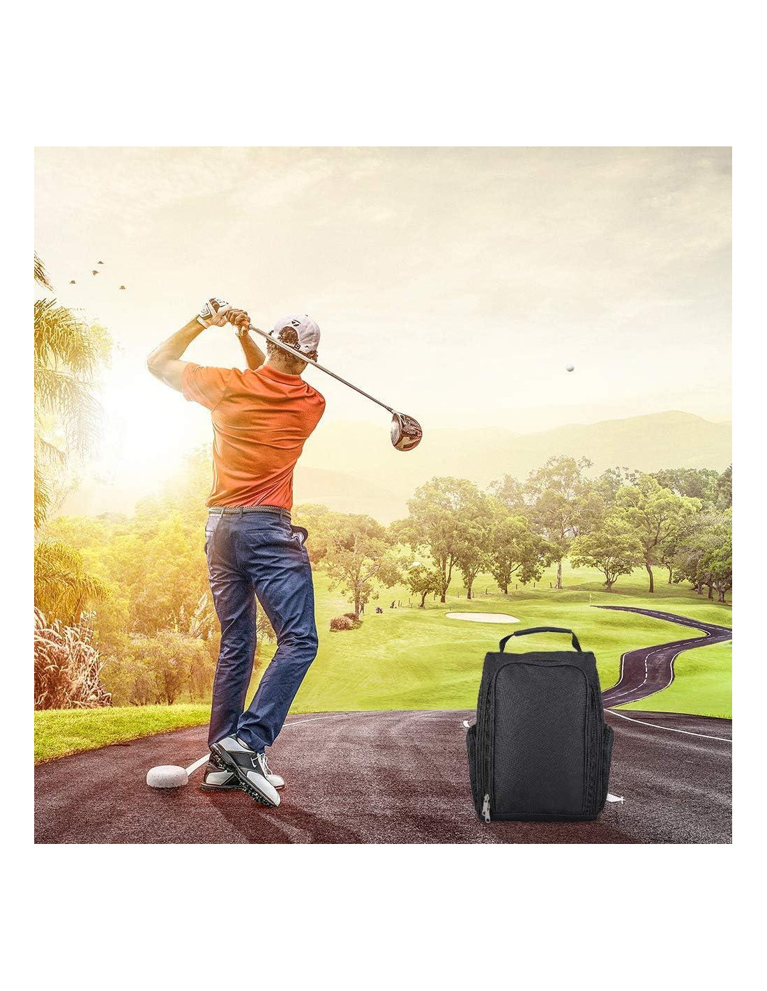 - [Bolsa de Accesorios de Golf] - La bolsa de zapatos de golf incluye bolsillos laterales con cremallera que son perfectos para tees, pelotas de golf, marcadores de pelotas, calcetines, llaves, billetera, teléfono, etc. La bolsa de zapatos de golf te permite llevar convenientemente tus zapatos y otros accesorios de golf