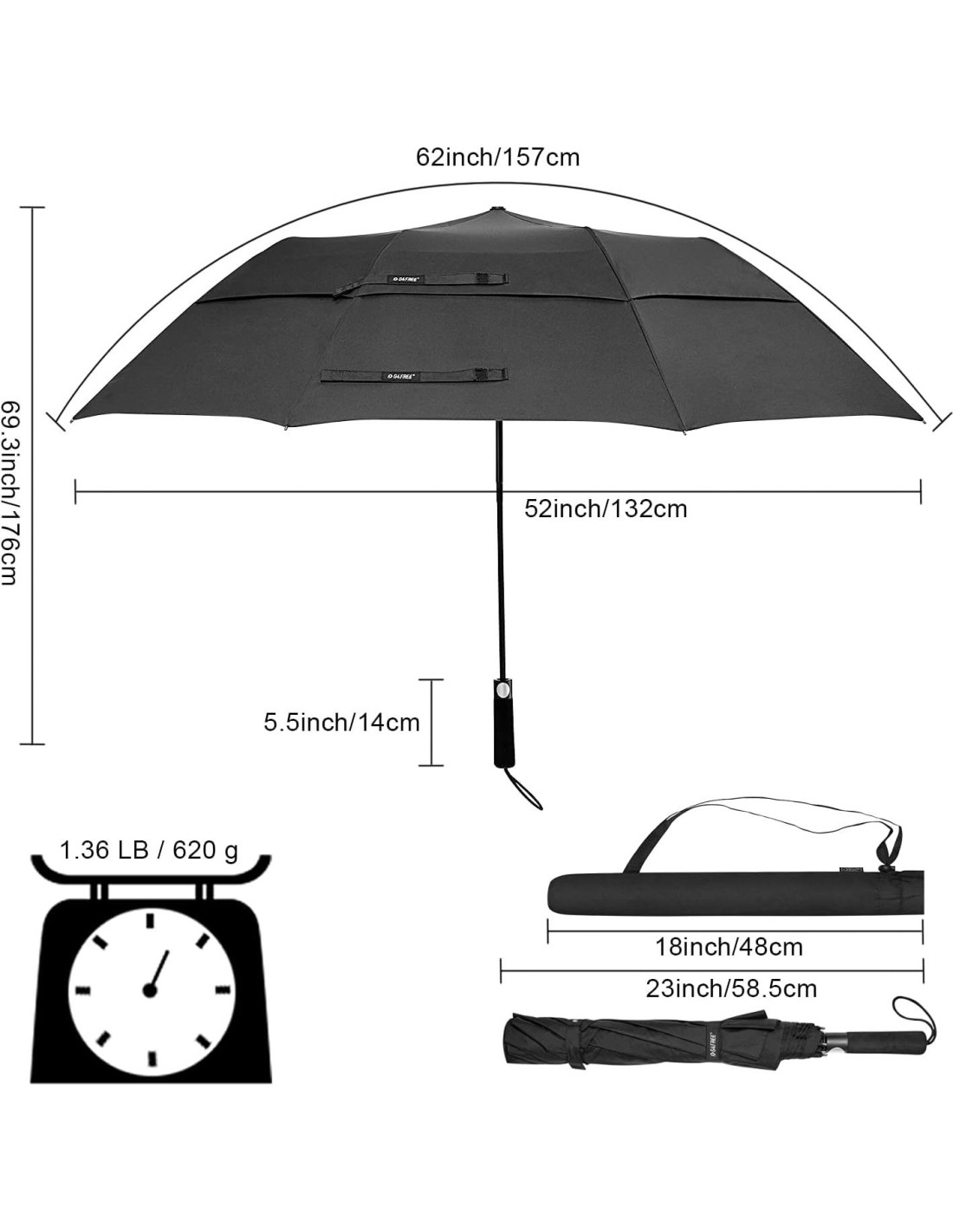 - Innovación Revolucionaria: El Paraguas de Golf Plegable G4Free de 62 pulgadas combina las mejores características de los paraguas compactos y de golf. El dosel se abre hasta un arco de 62 pulgadas. Plegable a solo 23 pulgadas (58.5 cm) y pesando solo 1.36 lb (620 g). Adecuado para ser empacado dentro del auto, maleta o mochila. Más grande y más fuerte que los paraguas pequeños. Más compacto que los paraguas de palo; especialmente perfecto para los amantes de los viajes y el golf.