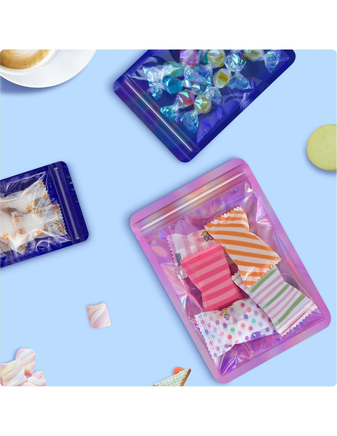 - [Colores Holográficos]: Esta bolsa de almacenamiento reutilizable. En la parte posterior hay un arcoíris holográfico. Puedes ver diferentes colores desde diferentes luces y ángulos. Para ayudarte a distinguir entre múltiples bolsas bien selladas, diseñamos una ventana transparente en la parte frontal. Ahora, con solo un vistazo, puedes elegir la que necesitas. También hay agujeros para colgar diseñados. Para colgar y exhibir tu mercancía para que puedas mantenerla ordenada y limpia.