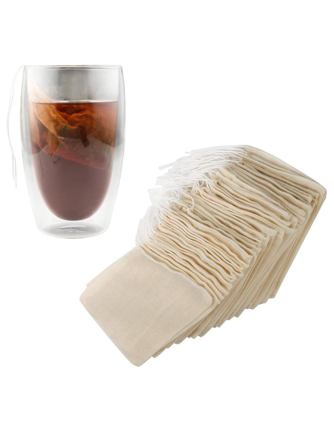 - [Paquete incluido] 50 piezas de algodón natural sin blanquear, difusor de té para té suelto, bolsas de sachet vacías, bolsas de especias/té/hierbas