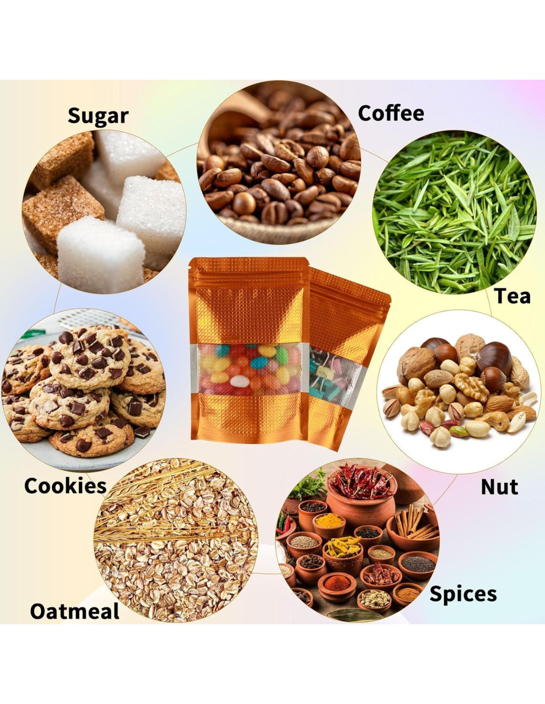Las bolsas mylar reutilizables están perfectamente diseñadas para nueces, frutas secas, caramelos, galletas, frijoles, granos y bocadillos. También se pueden usar para empaquetar componentes electrónicos, piezas de joyería, cosméticos, gadgets decorativos y muchos más artículos que desees. Consejos: Hay 4 tamaños, por favor elige el tamaño adecuado antes de comprar.
