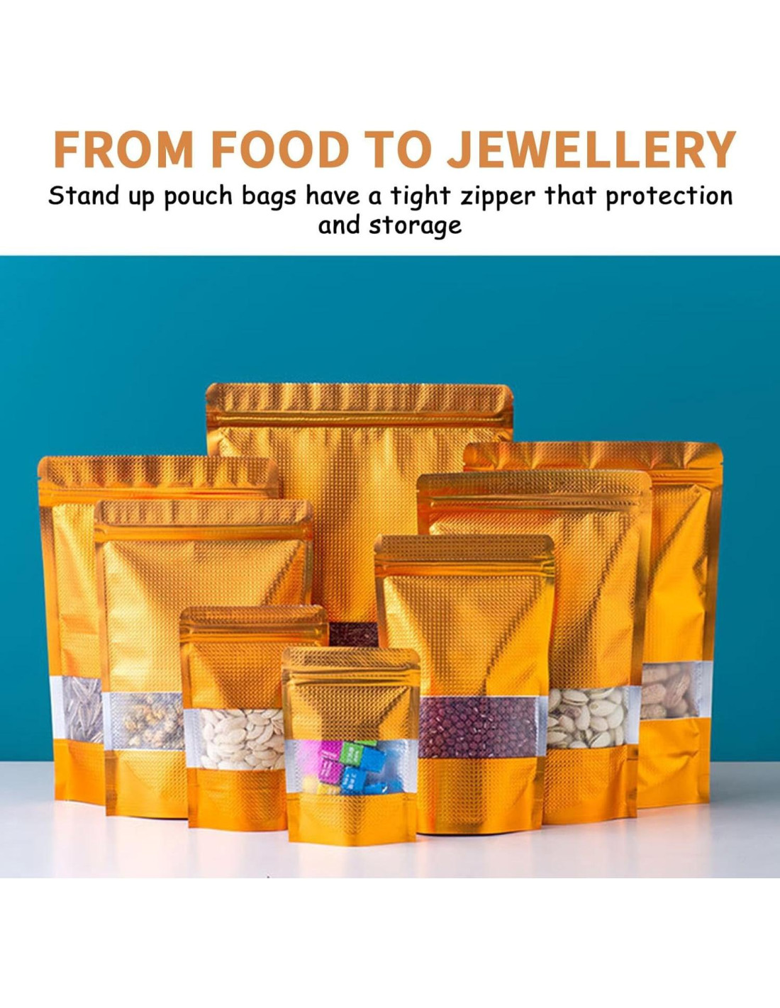 - Múltiples Tamaños Disponibles: Estas bolsas mylar reutilizables al por mayor satisfacen diversas necesidades; para almacenar granos de café, caramelos, galletas, nueces, polvos, bocadillos y mucho más alimentos o muestras de manicura de joyería.