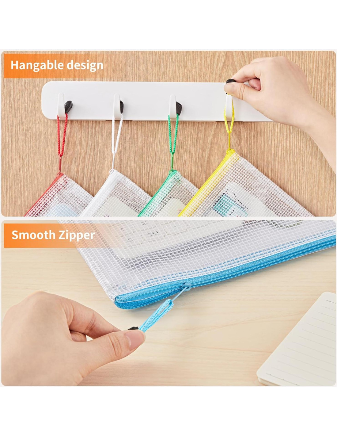 - Gran Capacidad Tamaño A4: Este conjunto incluye 24 bolsas de malla con cierre en tamaño A4 (32.5 x 23.9 cm), cada una capaz de contener más de 200 hojas de papel A4.