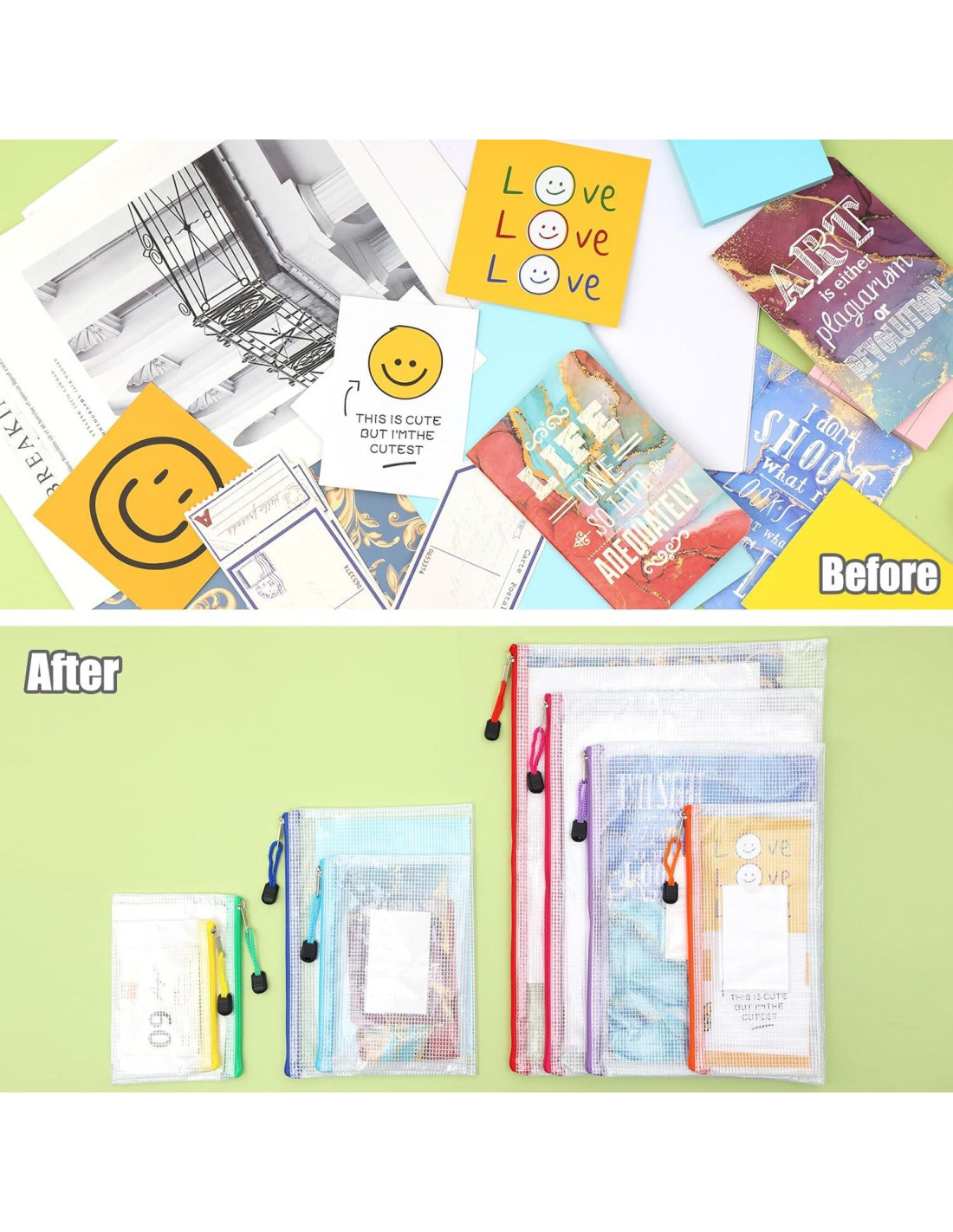 - [Ventajas]: El diseño translúcido y la cremallera colorida pueden identificar los artículos. Organiza el desorden y vive una vida simple. Adecuado para el hogar, la oficina y los viajes, se puede usar para organizar libros, papeles, facturas, fotos, cosméticos, etc.