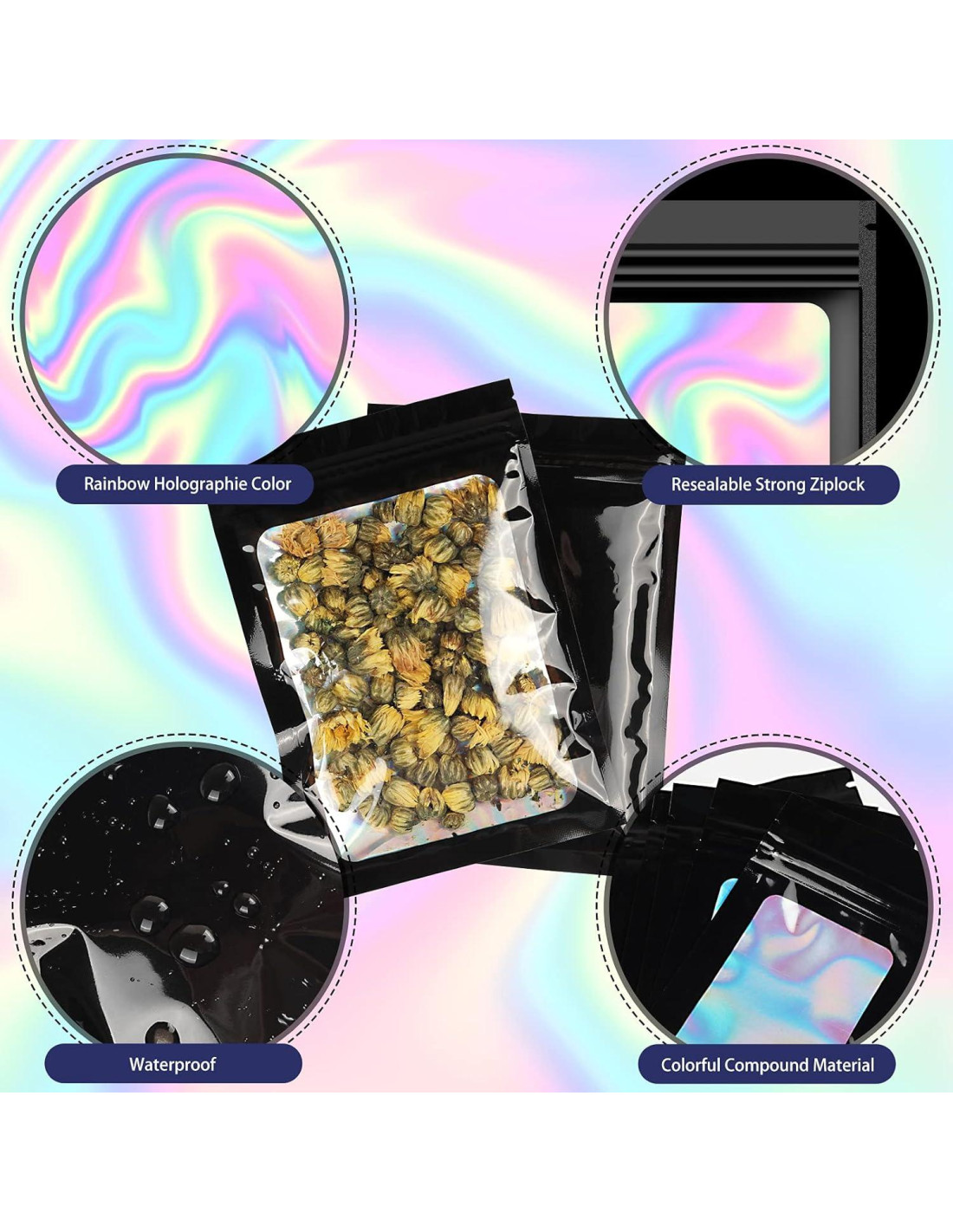 - Amplias aplicaciones: nuestras bolsas holográficas son adecuadas para empacar granos de café, sal de baño, dulces, pastillas, azúcar, arroz, galletas, té, nueces, frutas secas, bocadillos, palomitas de maíz, carne seca, o cualquier otro alimento que desee almacenar