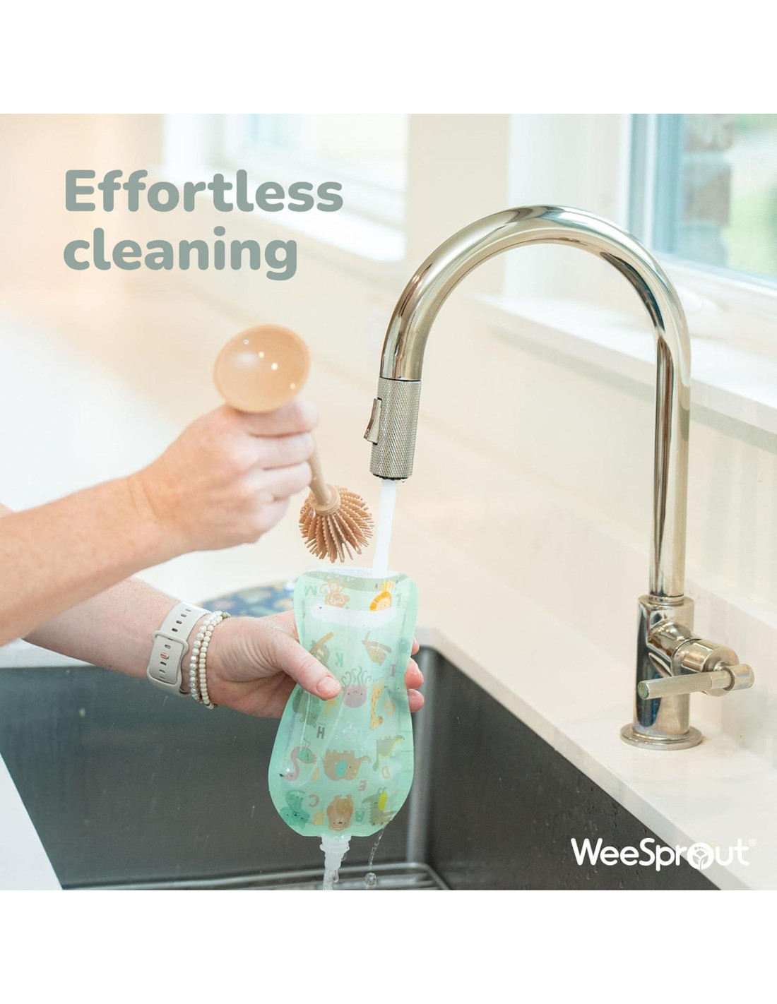 - DISHWASHER SAFE AND MADE TO LAST - WeeSprout reusable pouches are 100% top rack dishwasher safe - and the curved design means there are no pesky corners or crevices for food to get stuck in. Or clean your pouches with a bottle brush if you're in a rush. With thick plastic and durable construction, these pouches are made to last, wash after wash!