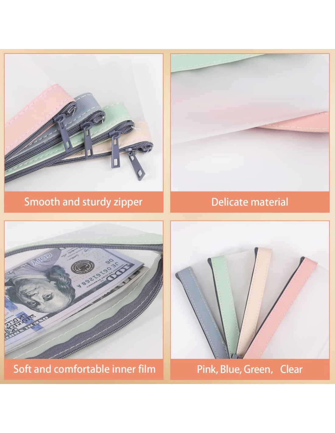 - [Paquete] : Un conjunto de 4 valiosas bolsas de dinero con cierre, una multitud de 4 colores divertidos, que te permite categorizar tu presupuesto. una cantidad suficiente para satisfacer tus necesidades diarias y laborales