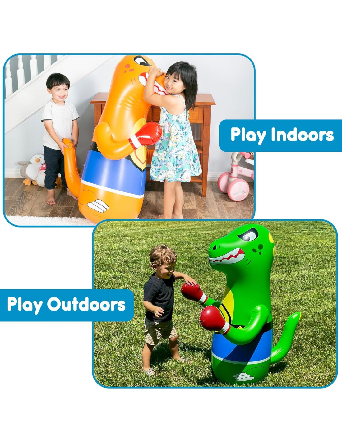 - Saco de Boxeo Autónomo - Mantén a tu hijo entretenido con nuestro increíble saco de boxeo para niños. Este saco de boxeo para niños presenta un dinosaurio inflable de aproximadamente 4 pies (121,92 cm) de altura. La base de este saco de boxeo se puede llenar con arena o agua para mantenerlo en su lugar después de ser golpeado o pateado enérgicamente.