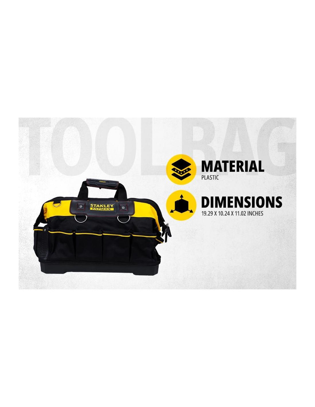 La bolsa de herramientas STANLEY FATMAX de 18 pulgadas es perfecta para todas tus necesidades de almacenamiento móvil. Hecha de tela pesada de 600 denier con refuerzos de cuero para durabilidad. Cuenta con una base rígida y a prueba de agua de plástico. La correa para el hombro permite un transporte más fácil de cargas pesadas. Los compartimentos de herramientas de uso múltiple son ideales para almacenar varias herramientas. La estructura abierta y los cierres de fácil acceso permiten un acceso rápido y sencillo a las herramientas. Mantente organizado con los lazos internos para herramientas.