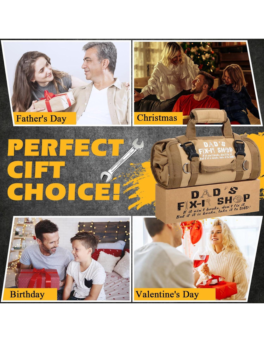 - Regalos del Día del Padre de la hija: una bolsa de herramientas enrollable de buen tamaño en color caqui; Te sorprendería cuántas herramientas caben en esta bolsa de herramientas: coloca tus herramientas en esta bolsa de herramientas; También tenemos una caja de papel kraft para poner el kit y dárselo a tu papá