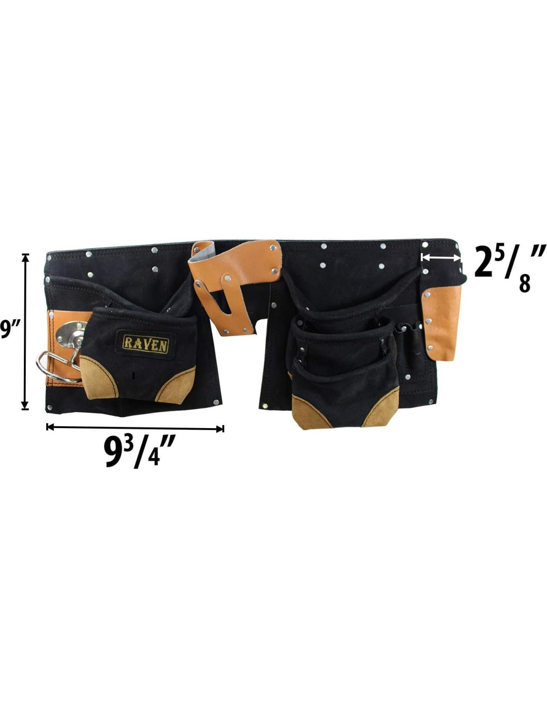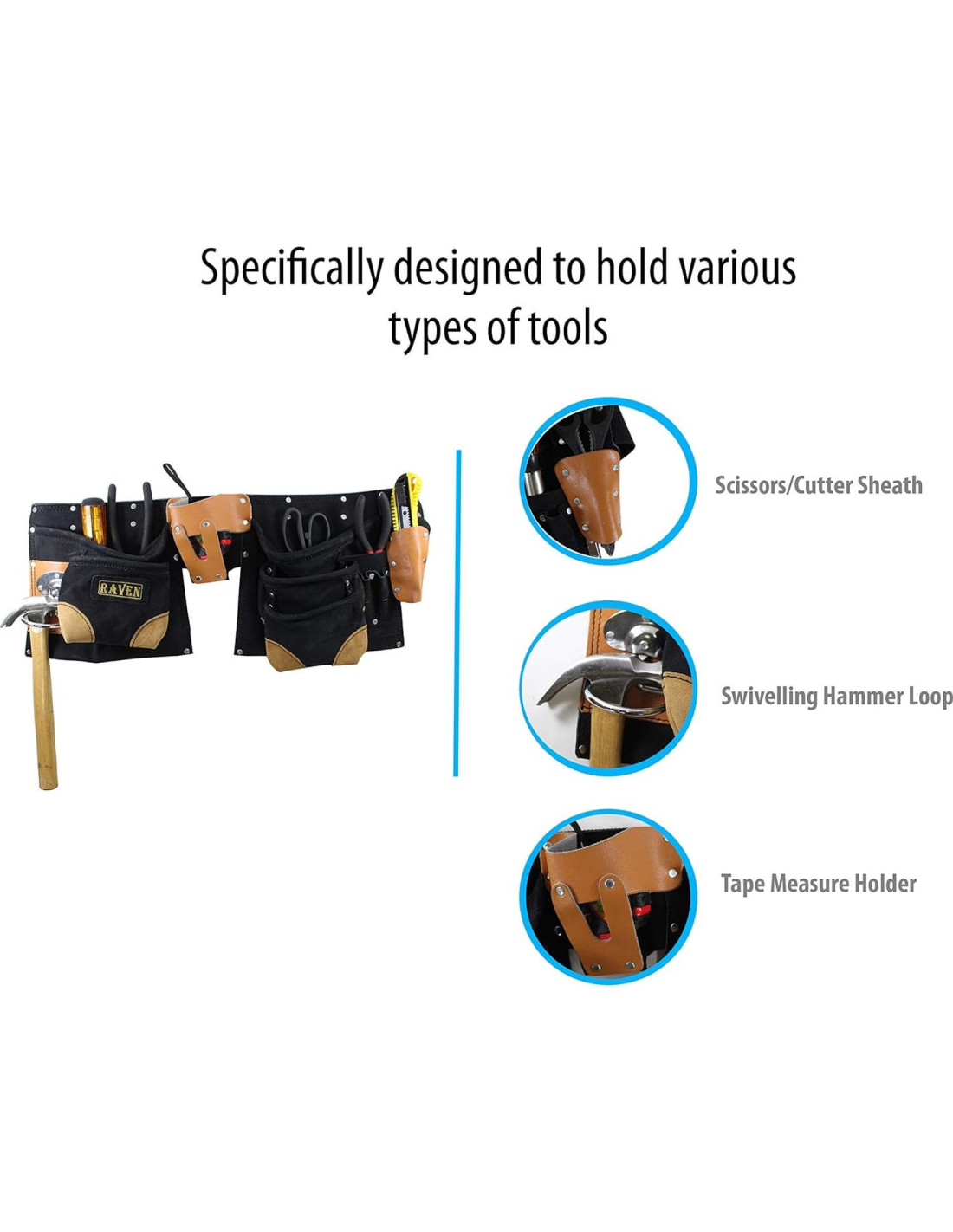 - Cinturón de Bolsa de Herramientas RAVEN Negro | 11 Bolsillos Versátiles | Construcción de Suede de Alta Calidad | Cintura Ajustable de 48" (122 cm) | Incluye Soporte para Martillo y Funda para Cuchillo