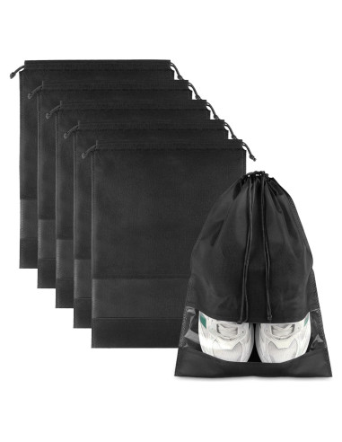 - MATERIAL PREMIUM: Las bolsas de zapatos para viajar están hechas de tela no tejida, transpirable y liviana, las bolsas de zapatos de viaje para empacar están equipadas con un diseño de cordón, que se puede atar y desatar fácilmente; Mantén los zapatos limpios y organizados