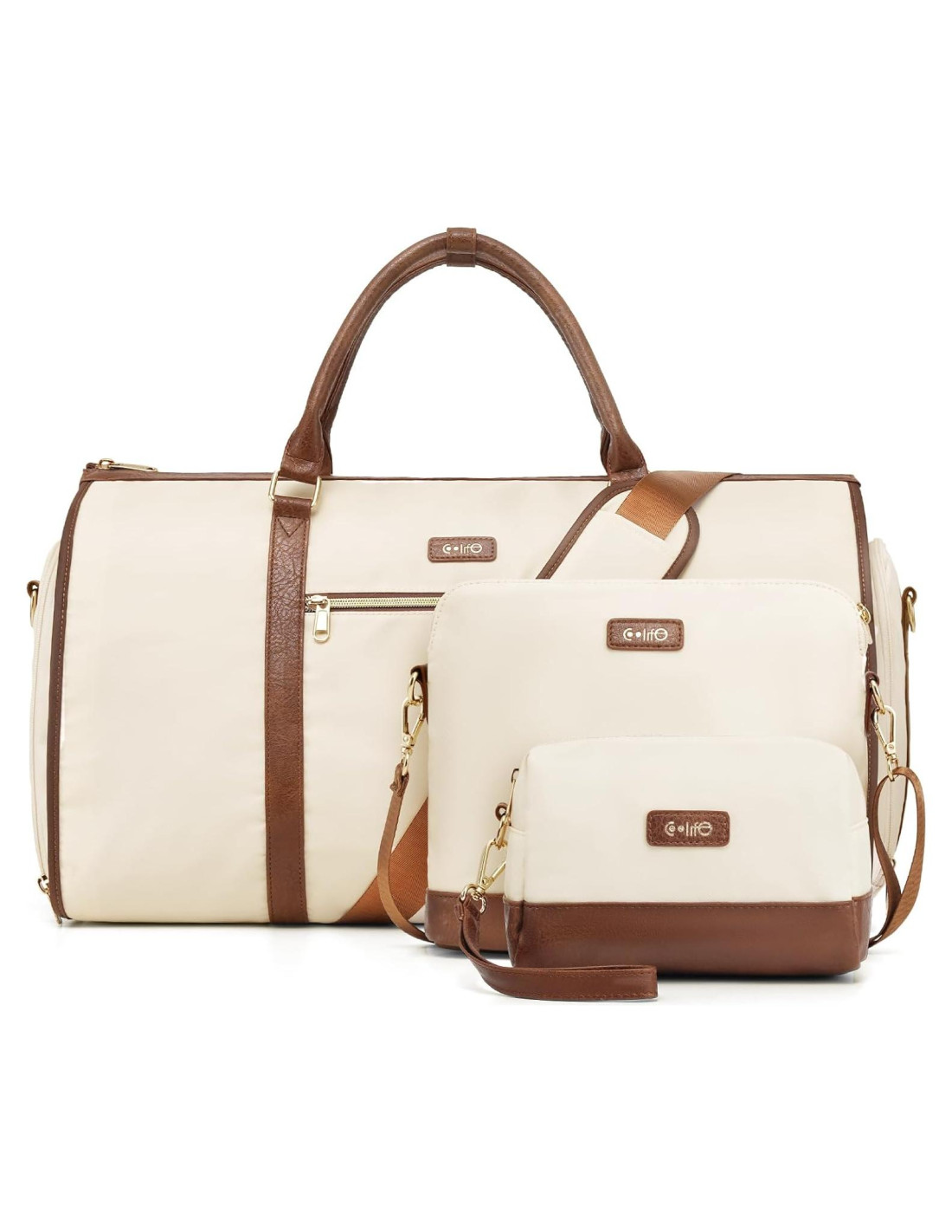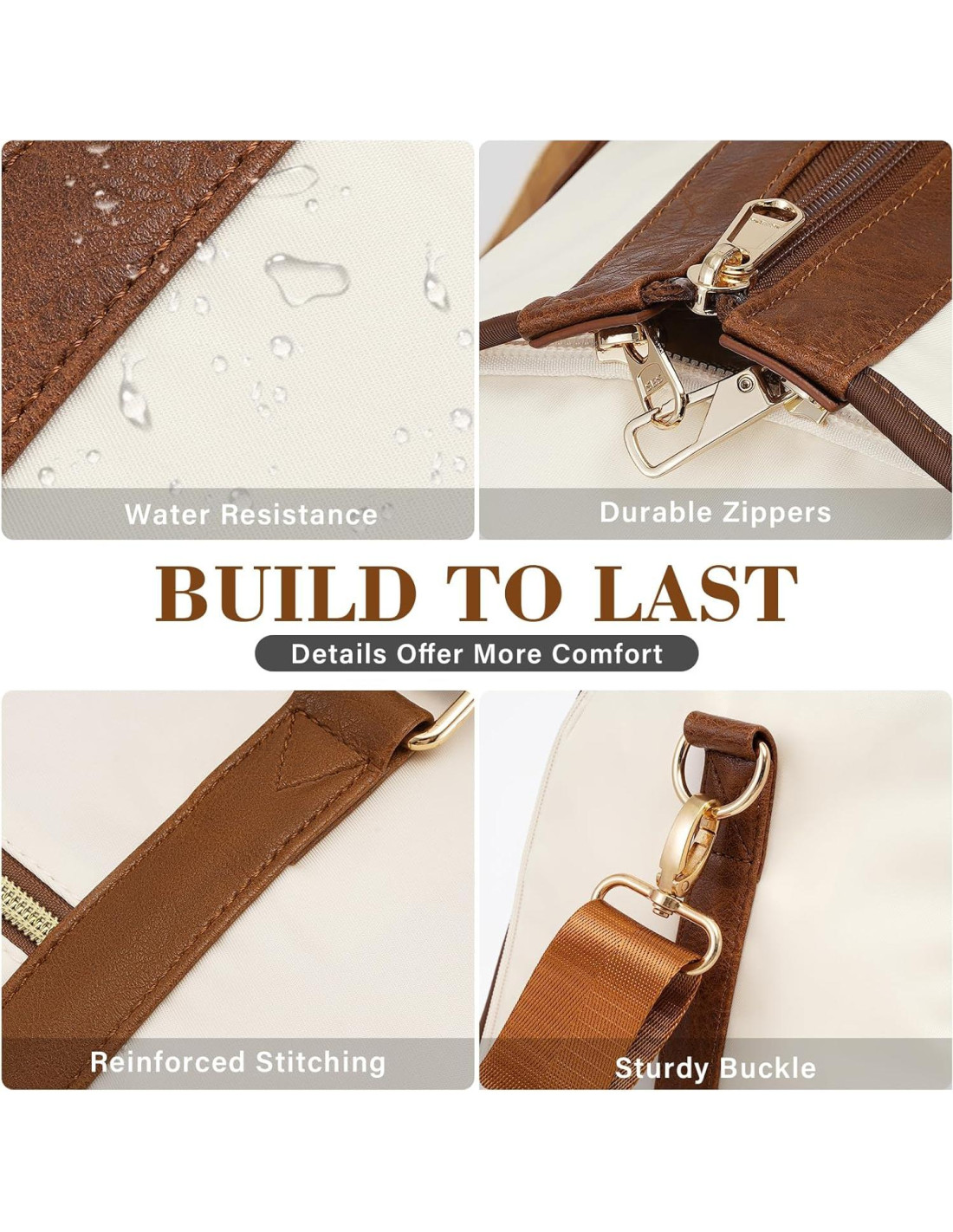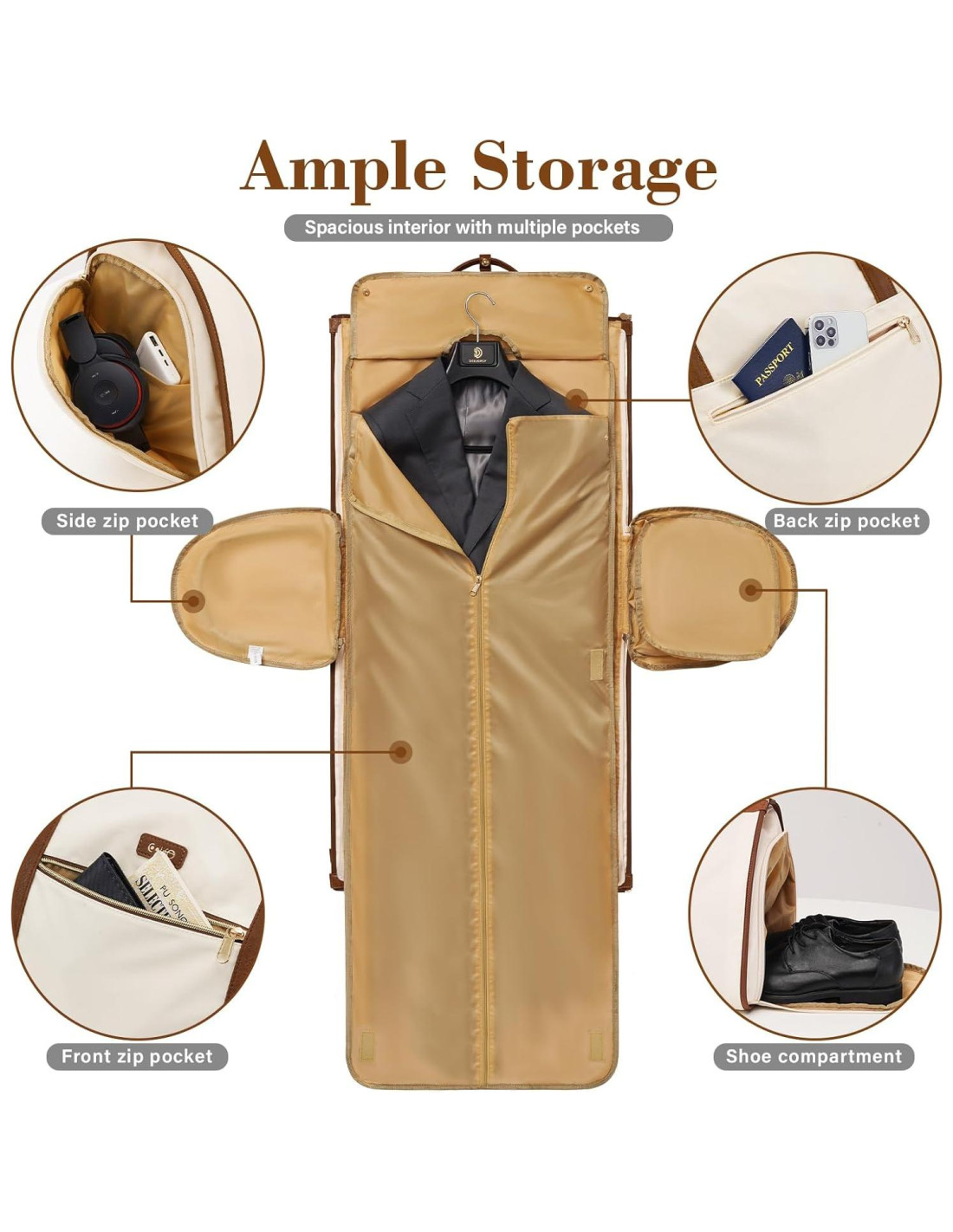 - Artesanía Premium: Hecha de tela de alta calidad con costuras reforzadas y cremalleras duraderas, esta bolsa de ropa de viaje está construida para la longevidad, sin importar cuán a menudo viajes. El material ligeramente resistente al agua, junto con elegantes acentos de cuero vegano y herrajes en tono dorado, añade un toque de lujo y estilo atemporal.