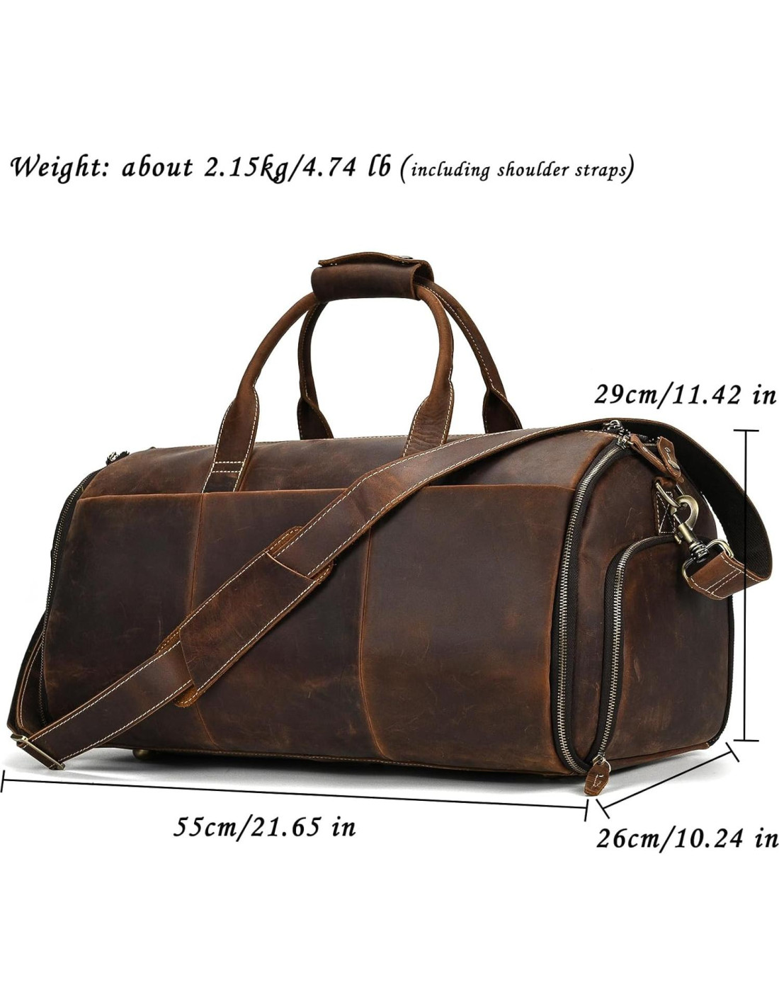 - Cuero Genuino: Nuestro Duffle está hecho de cuero de búfalo genuino grueso y hecho a mano por artesanos experimentados, diseño inspirado en lo vintage combinado con el cuero desgastado da un aspecto elegante y rico.
