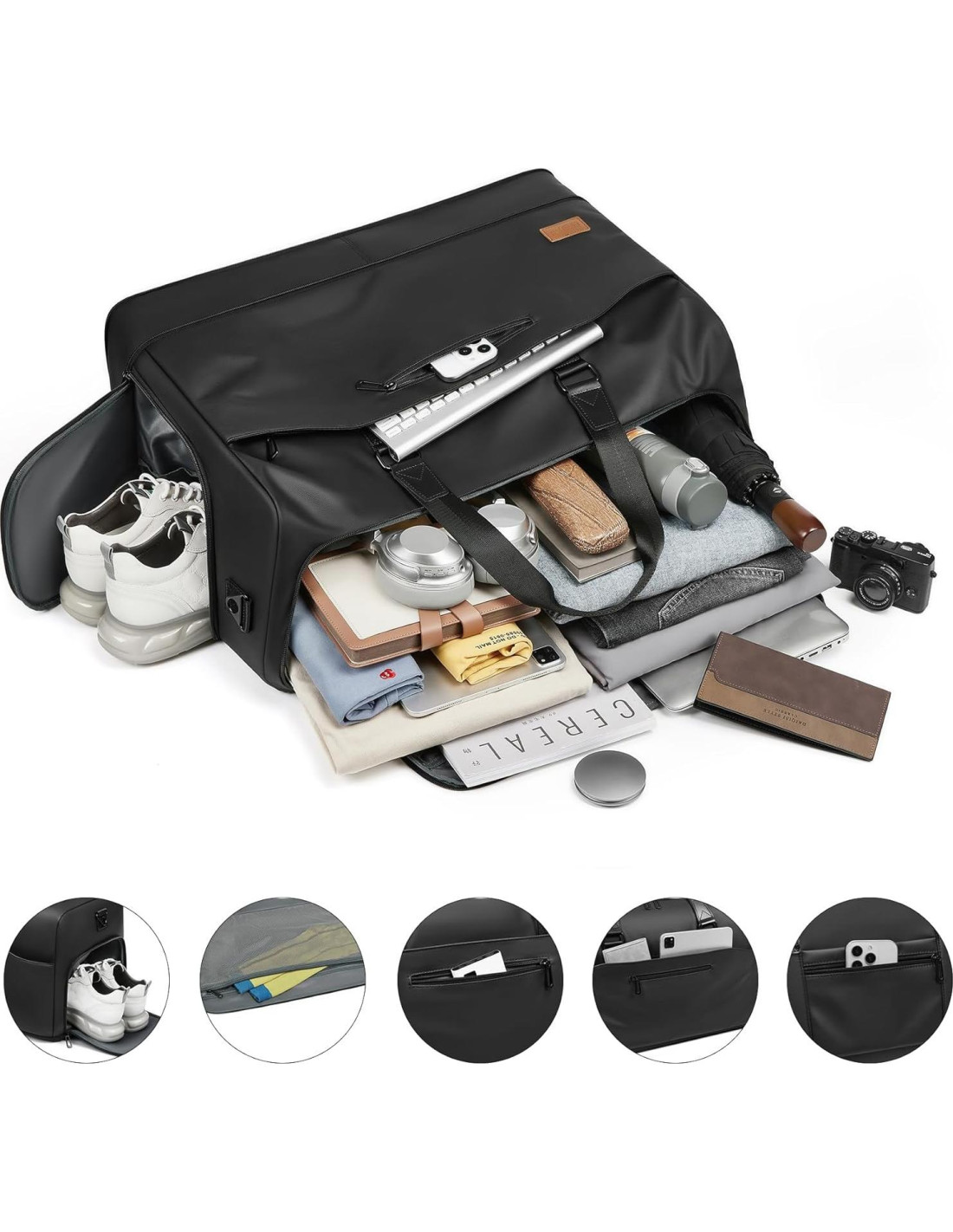 - Compartimento separado para zapatos: La bolsa de viaje tipo duffle tiene un compartimento independiente para zapatos, puede acomodar 2 pares de zapatos de hombre o ropa sucia. Puede ayudarle a evitar ensuciar otras prendas al empacar, además de proporcionar más comodidad para su viaje.